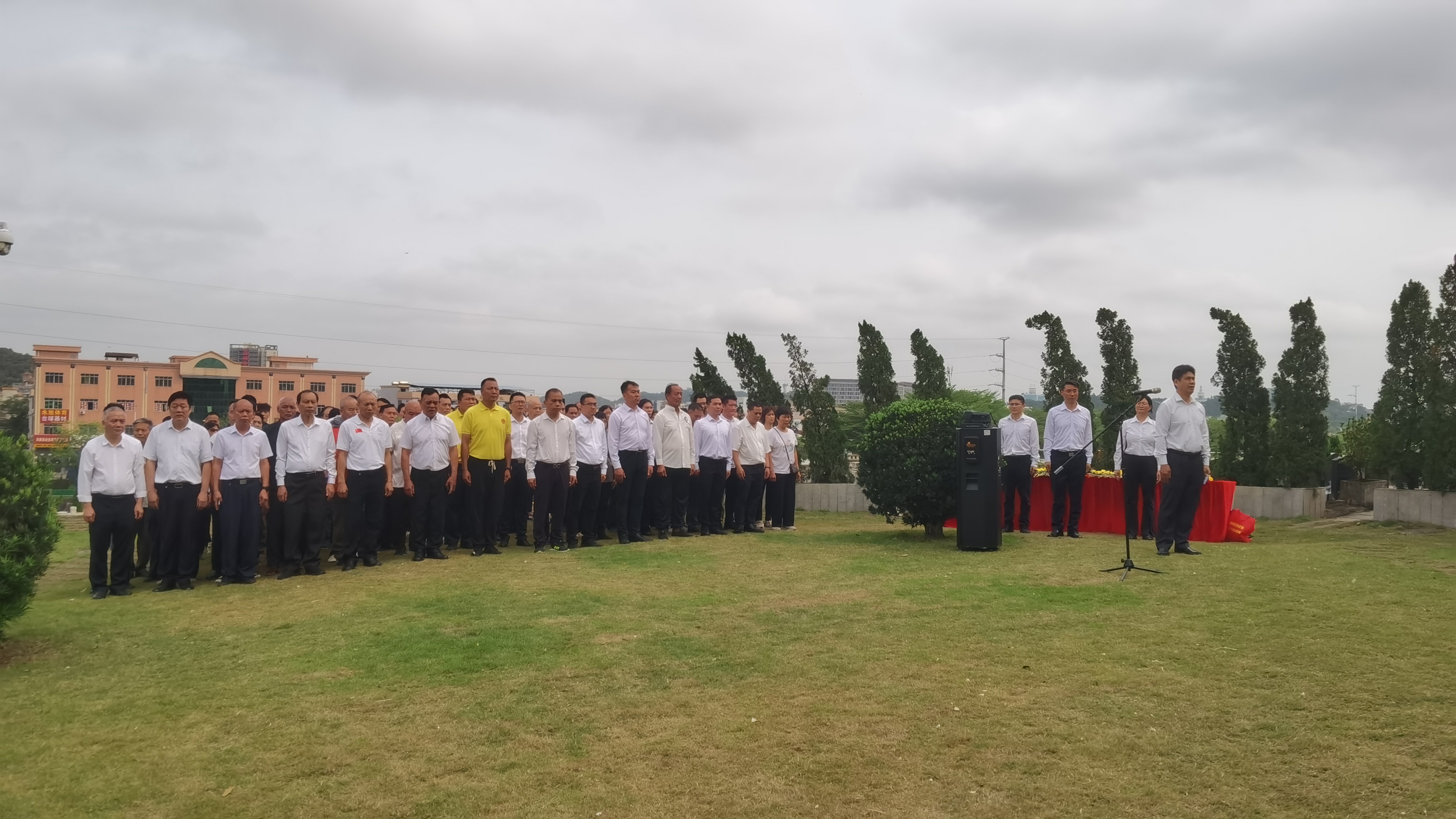 祭奠活动在雄壮的国歌声中拉开序幕,全体人员整齐列队、垂首肃立,以一分钟默哀寄托对革命先烈的敬慕与怀念。