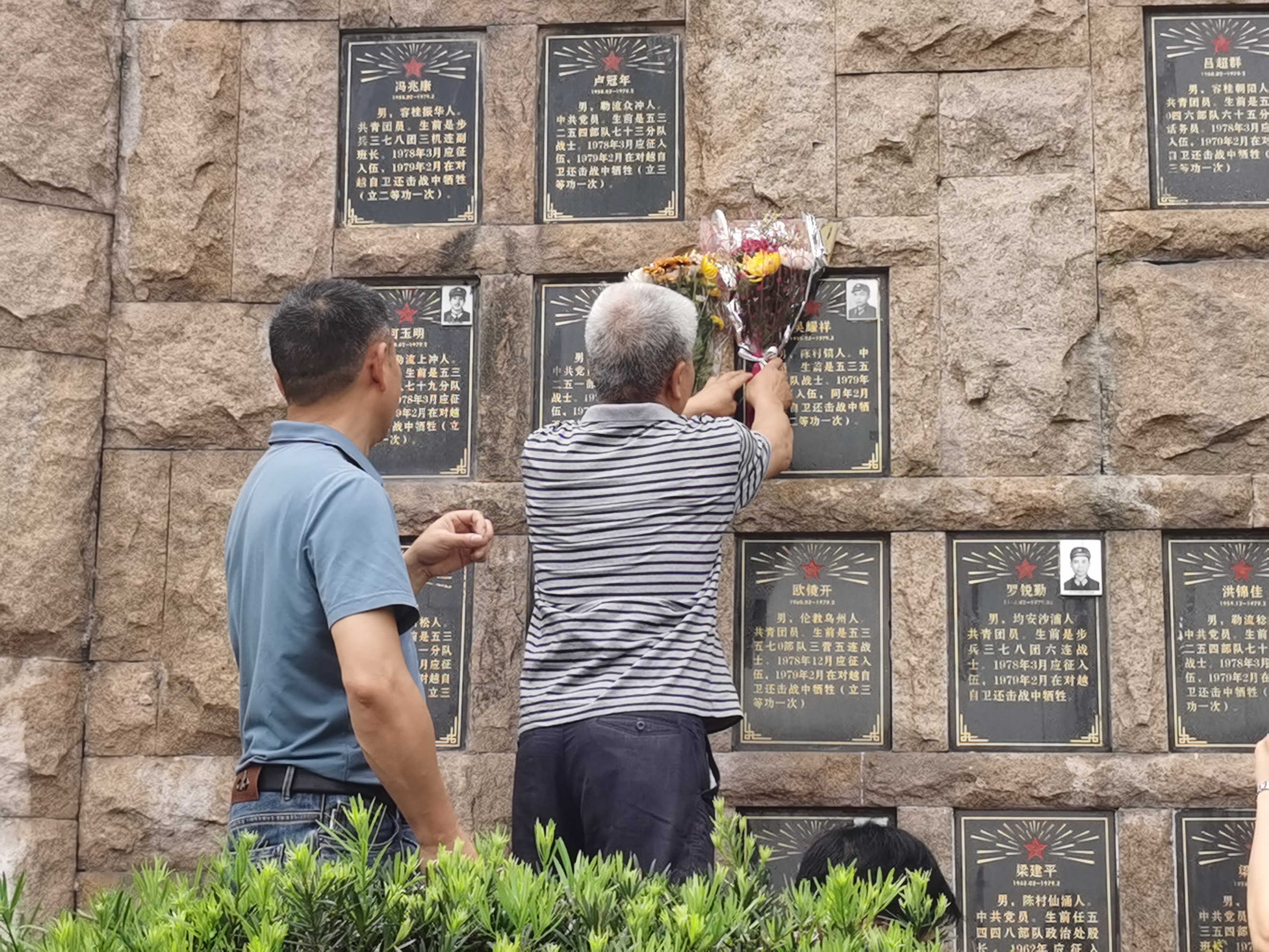 来自大良五沙的梁女士携两位妹妹,在纪念墙上找到了哥哥梁锡祥的名字,三人眼含泪水,久久驻足。梁锡祥1972年应征入伍,1975年7月在新疆乌鲁木齐参加战备设施建设时英勇牺牲。“哥哥离家时我们才十几岁,第一次去新疆祭拜,我们哭晕在墓前。”梁女士哽咽着说,“正是有无数像哥哥这样的人牺牲,才有了今天的和平。感谢政府组织这样的活动,让后人永远铭记烈士的付出。”
