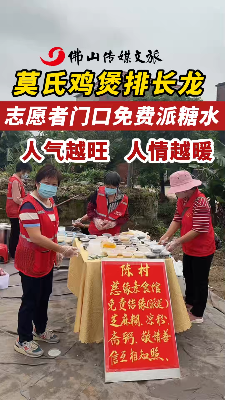 莫氏鸡煲排长龙,志愿者门口免费派糖水