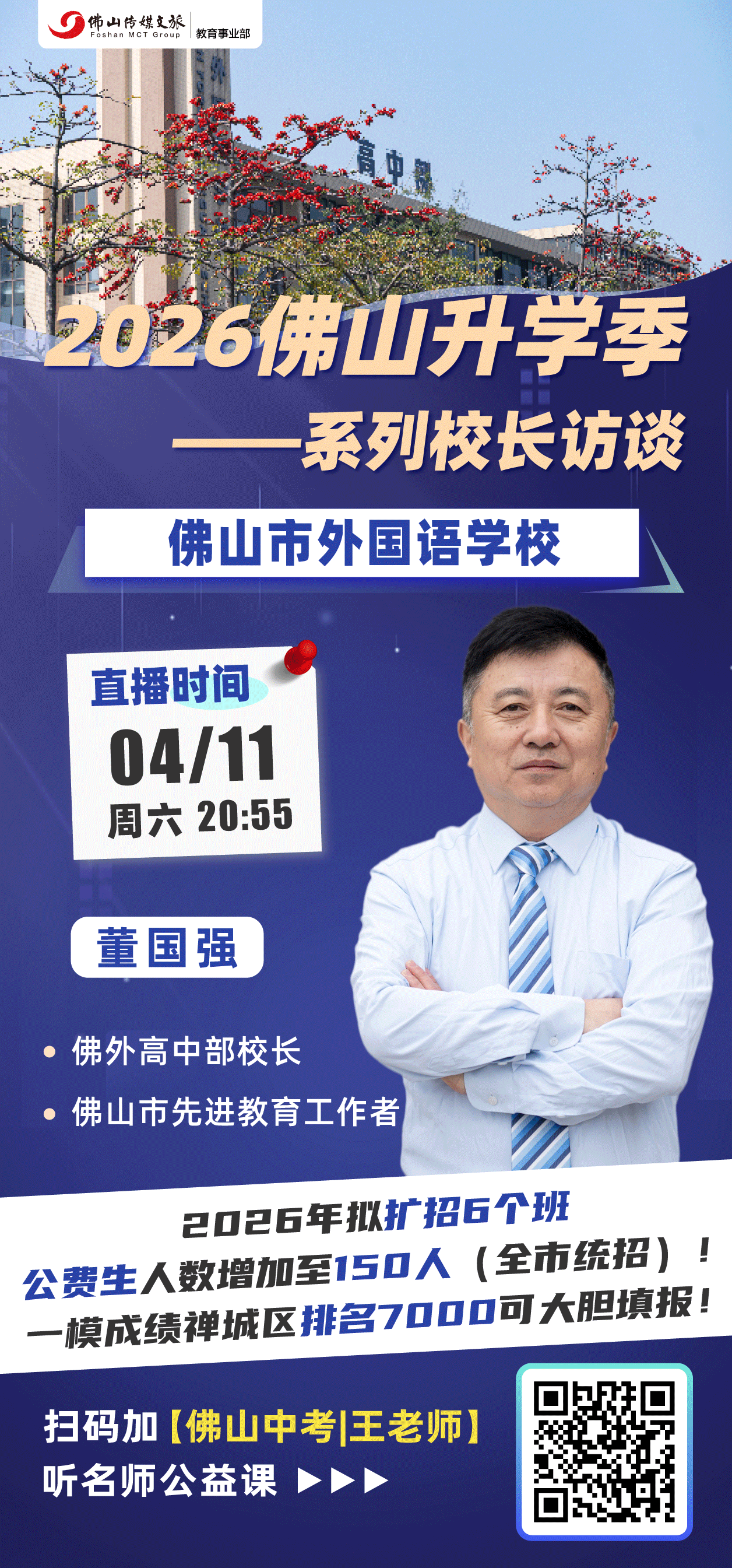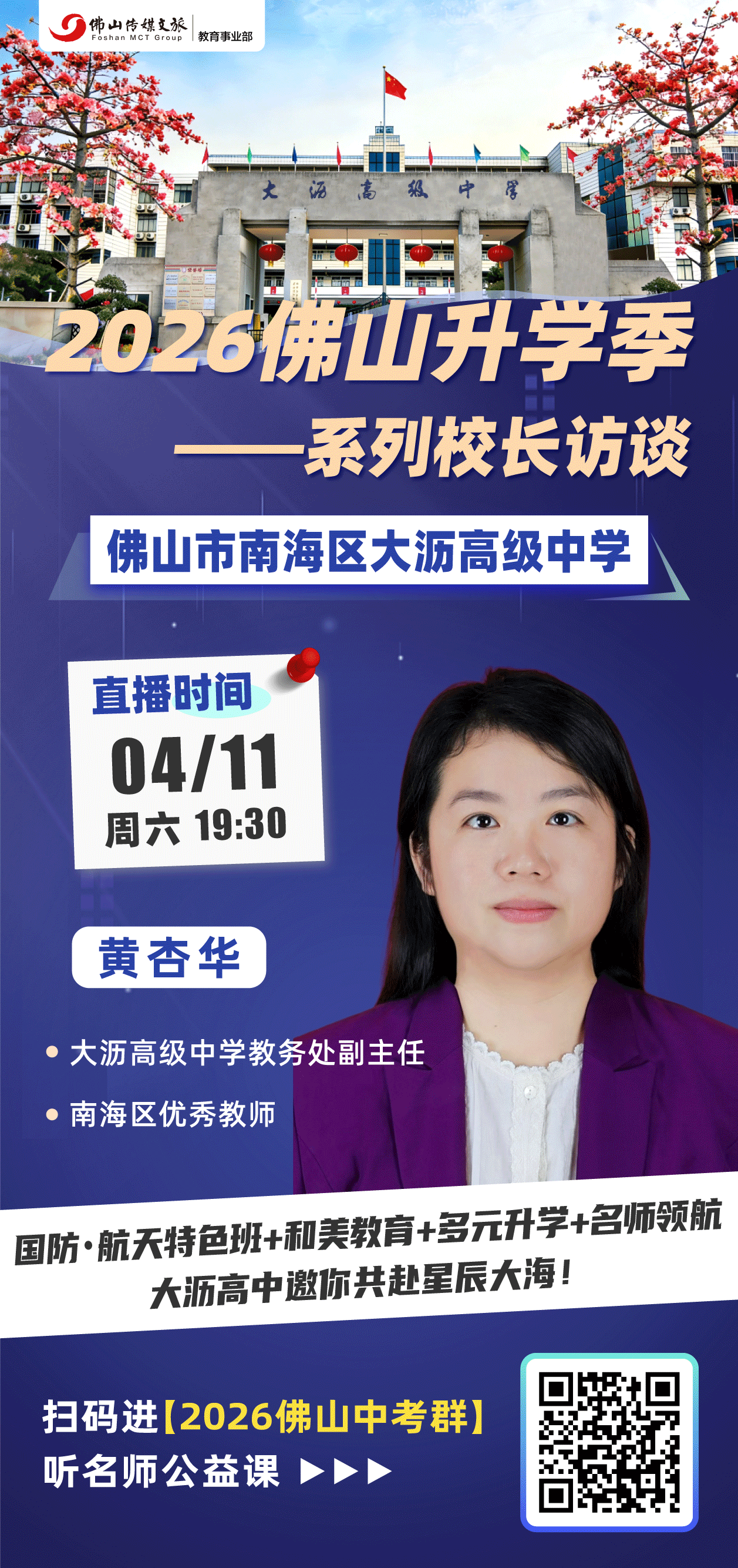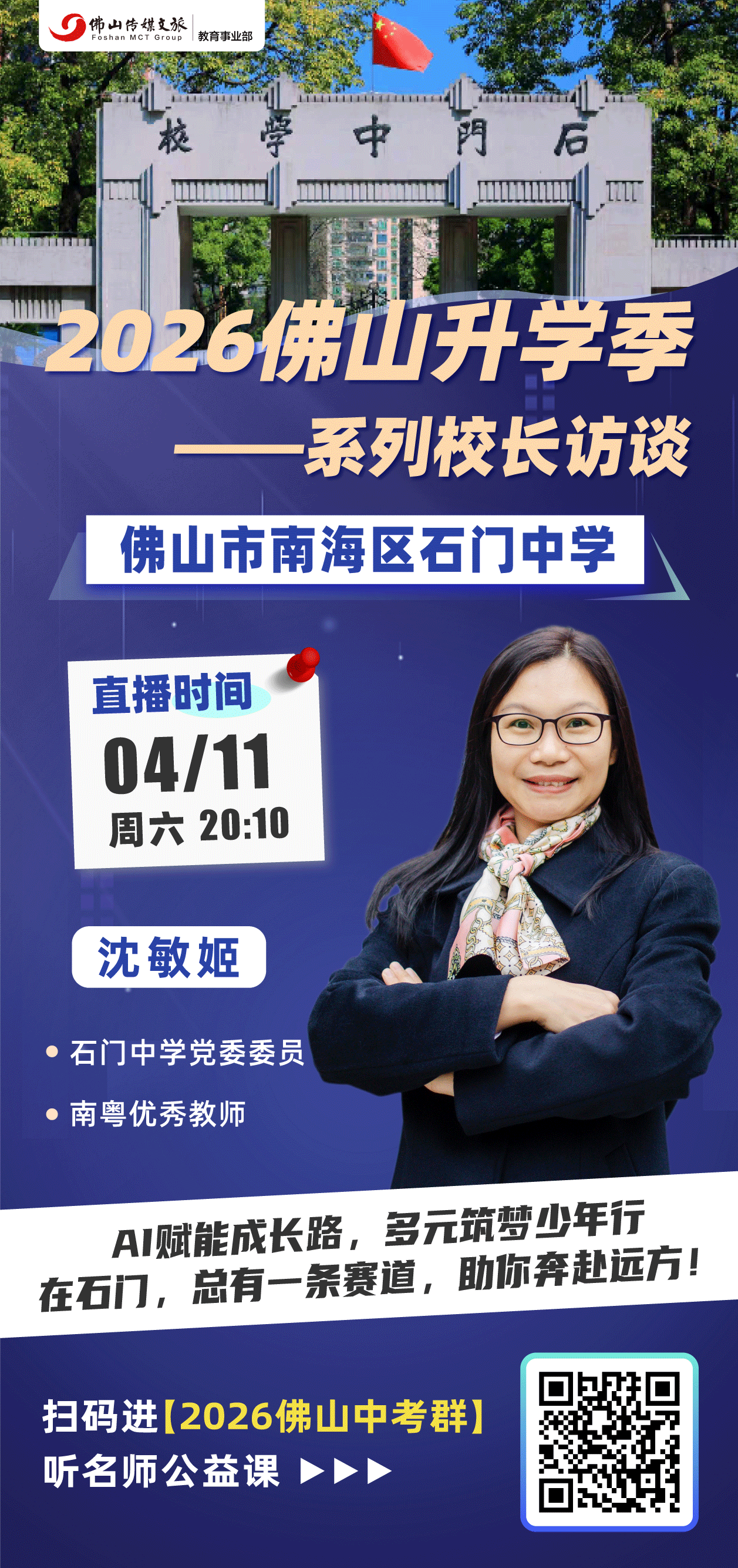 2026佛山中考升学进入关键阶段,备受考生与家长关注的“2026 佛山升学季 ——系列校长访谈”直播活动再度来袭。继3月29日首场直播人气爆棚、收获广泛好评后,本周将推出新一期专场,并同步重播热门学校访谈内容,为广大中考家庭送上权威、实用的升学指导。
