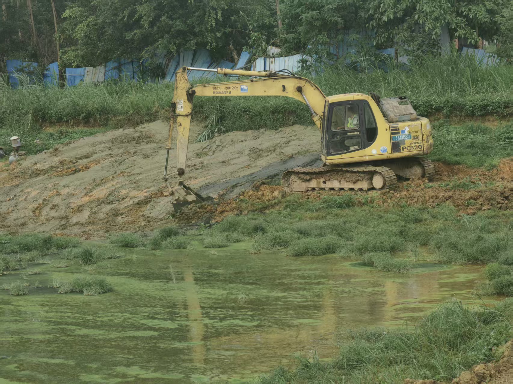 利用大型机械清理水塘淤泥