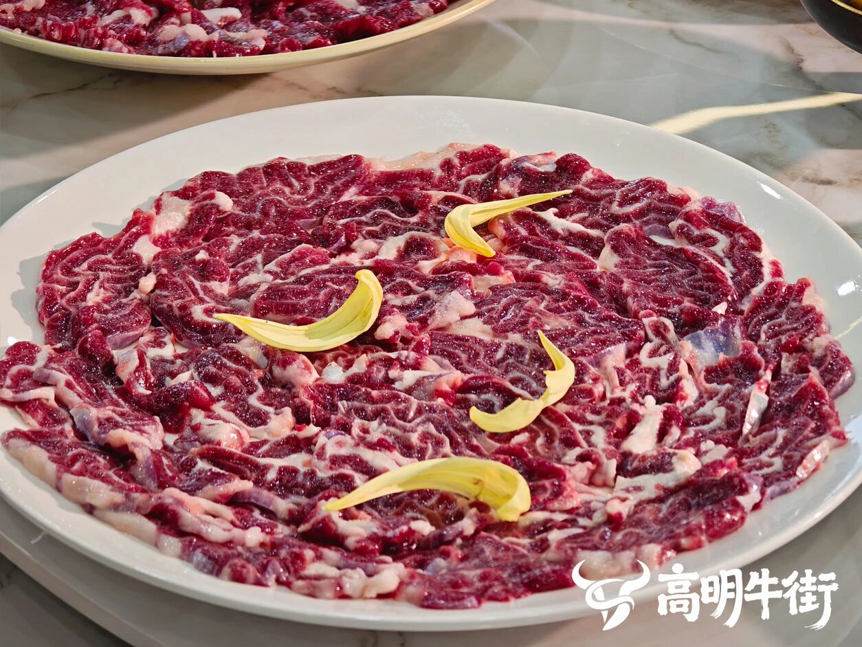 不同于其它地方肉品需要冷链配送,高明牛街采用独特的“楼上宰牛、楼下烹鲜”模式。据现场工作人员介绍,牛肉从隔壁的屠宰车间完成宰杀,到被切成薄片端上游客的餐桌,全过程最快仅需10分钟。牛肉上桌时仍在微微颤动,这种肉眼可见的新鲜度,正是“会跳舞的牛肉”这一IP的由来,也彻底征服了口味挑剔的大湾区食客。