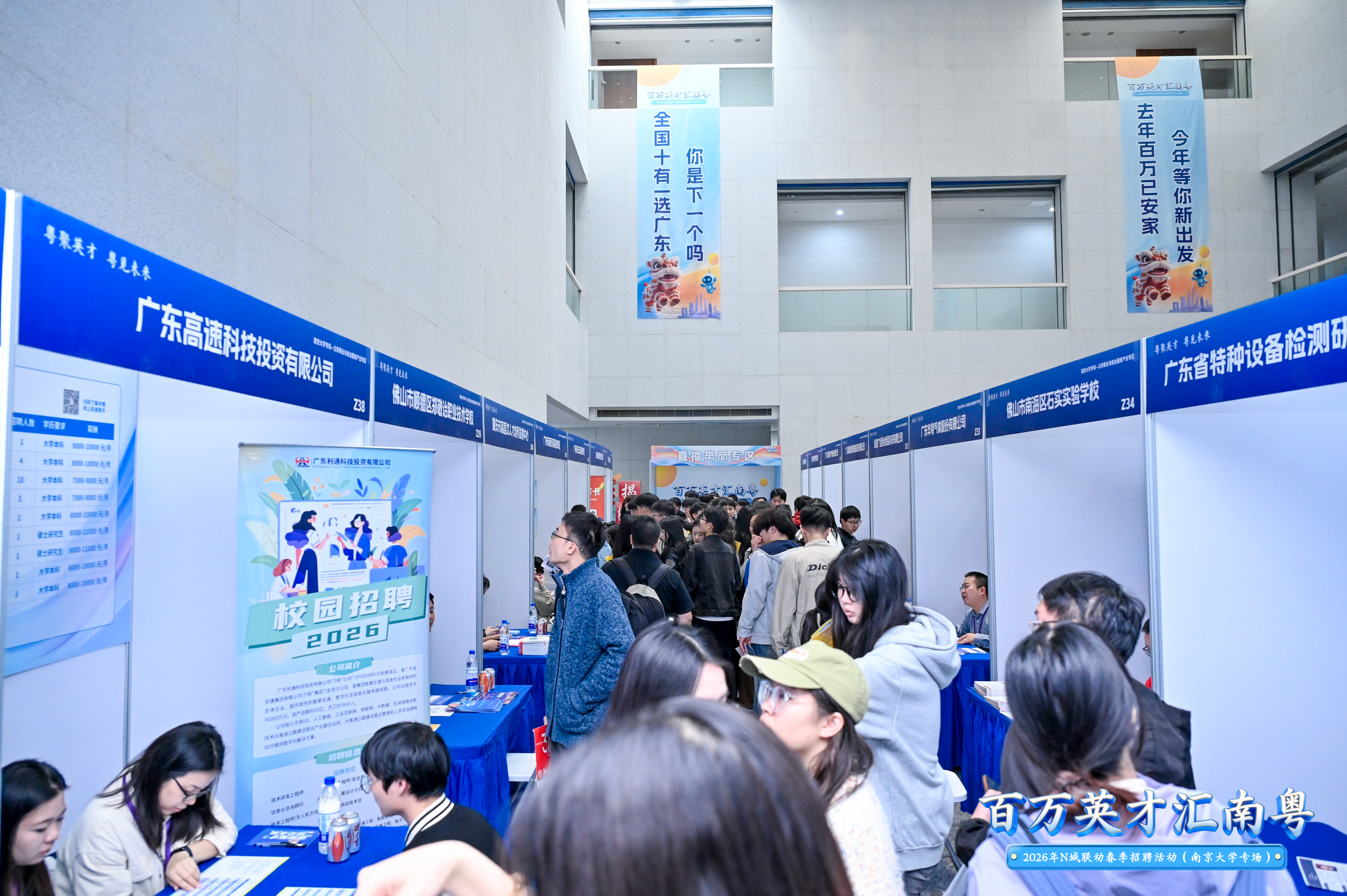 4月9日下午,南京大学仙林校区南大国际会议中心,“百万英才汇南粤”2026年N城联动春季招聘活动南京专场火热开启。