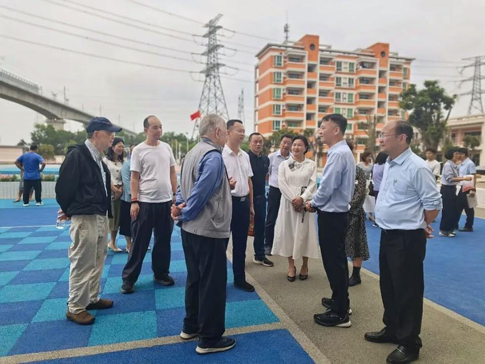 梁士诒家族后人一行参观和听取白坭镇第二小学发展历程