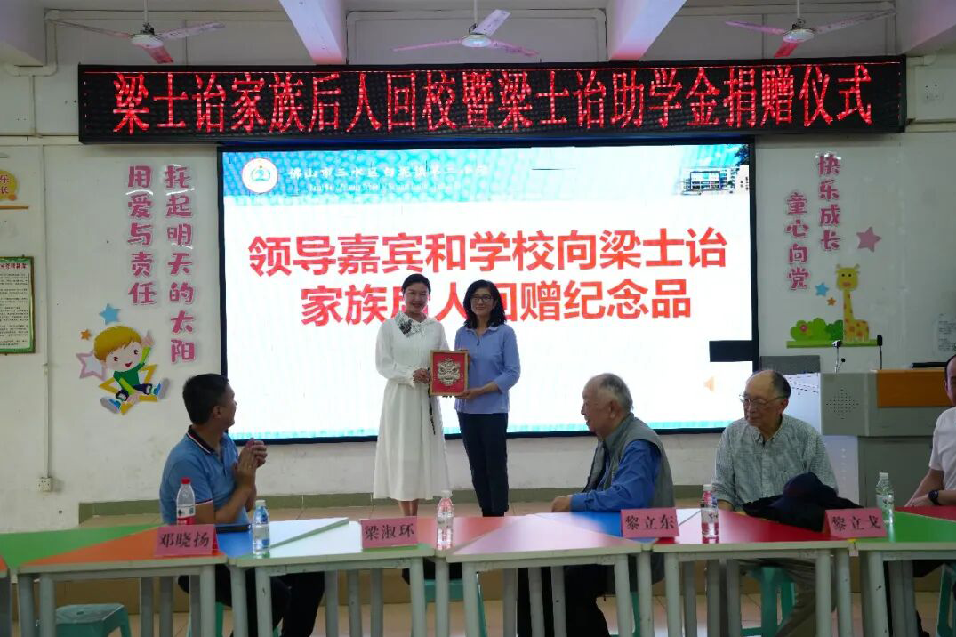 捐赠仪式在白坭镇第二小学简朴而隆重举行。梁士诒家族代表向学校捐赠37万元助学基金,专项支持学校教育事业发展。家族后人表示,教育是兴乡之基,此次捐赠是传承先辈造福乡梓精神,愿助力学子成长,鼓励他们学有所成、回报家乡。学校负责人对家族后人的善举表示衷心感谢,并表示将用好爱心基金,用心育人,培养更多优秀学子。