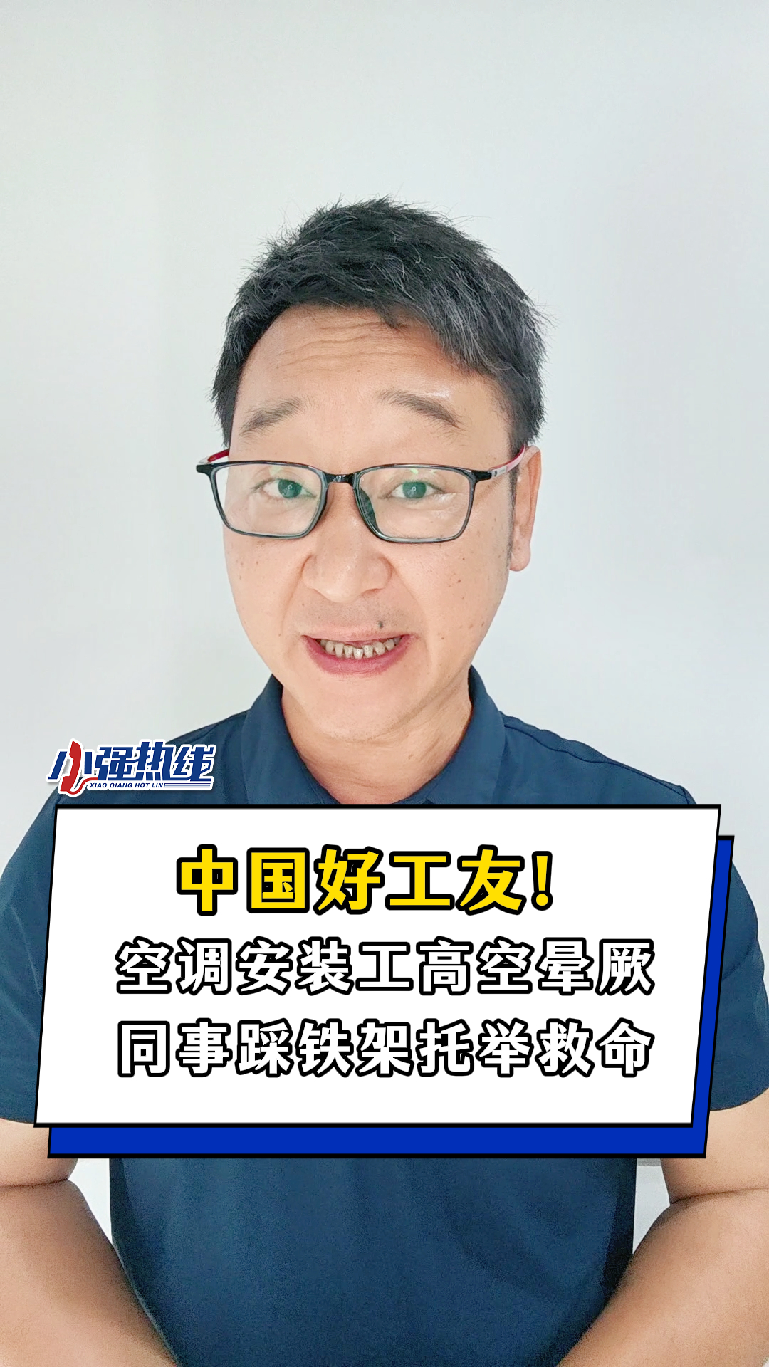 空调安装工高空晕厥,同事踩铁架托举救命