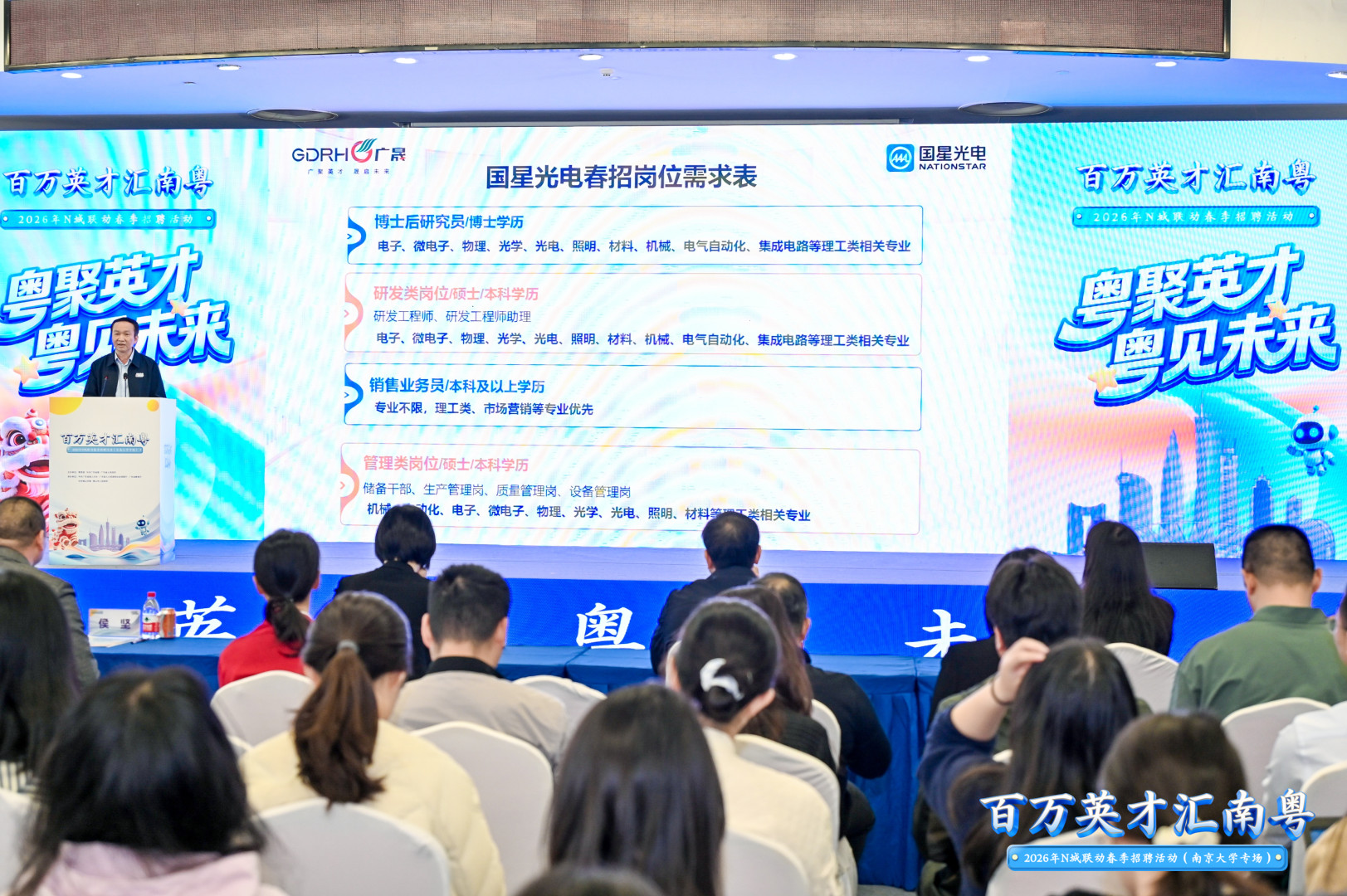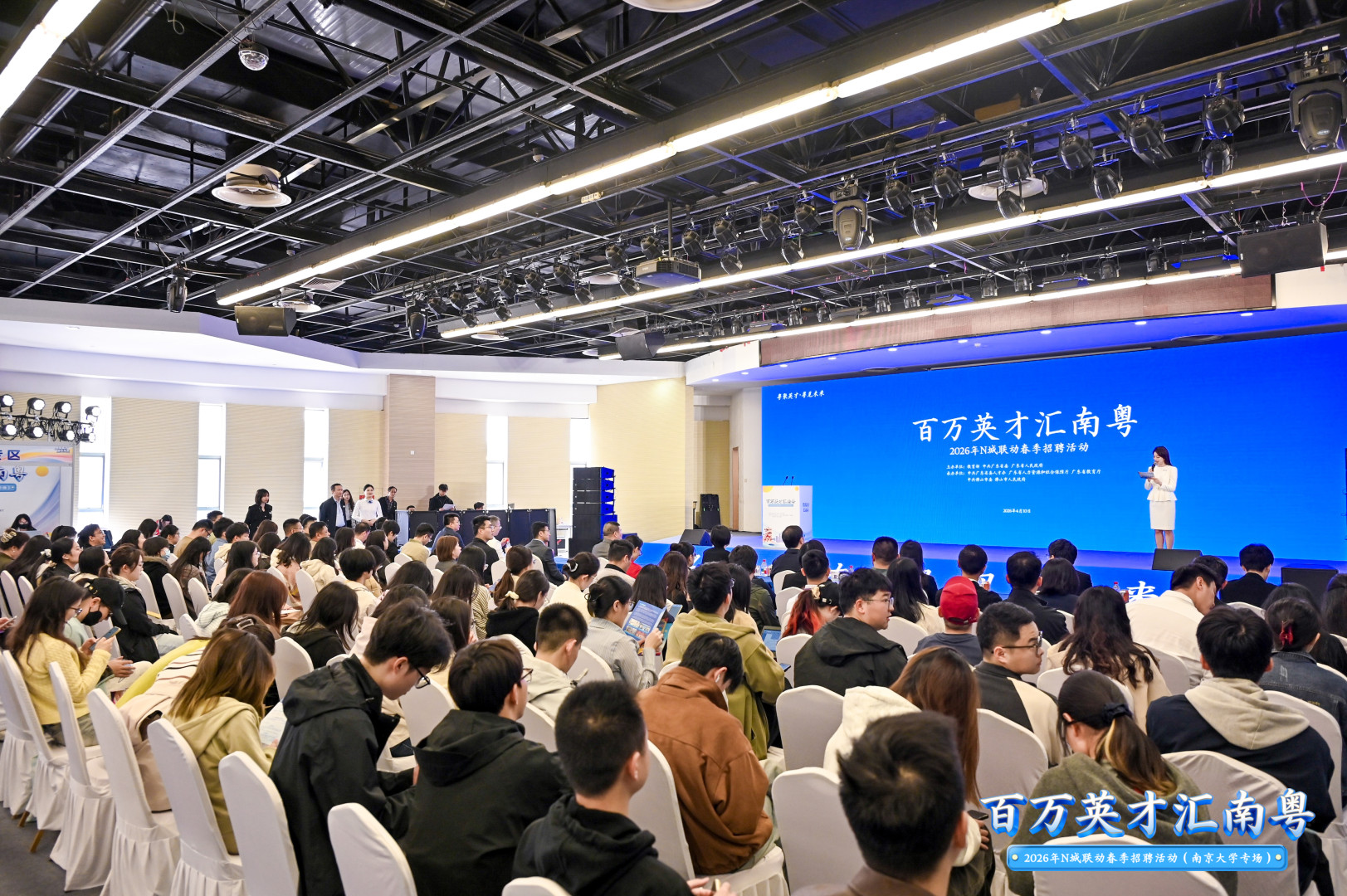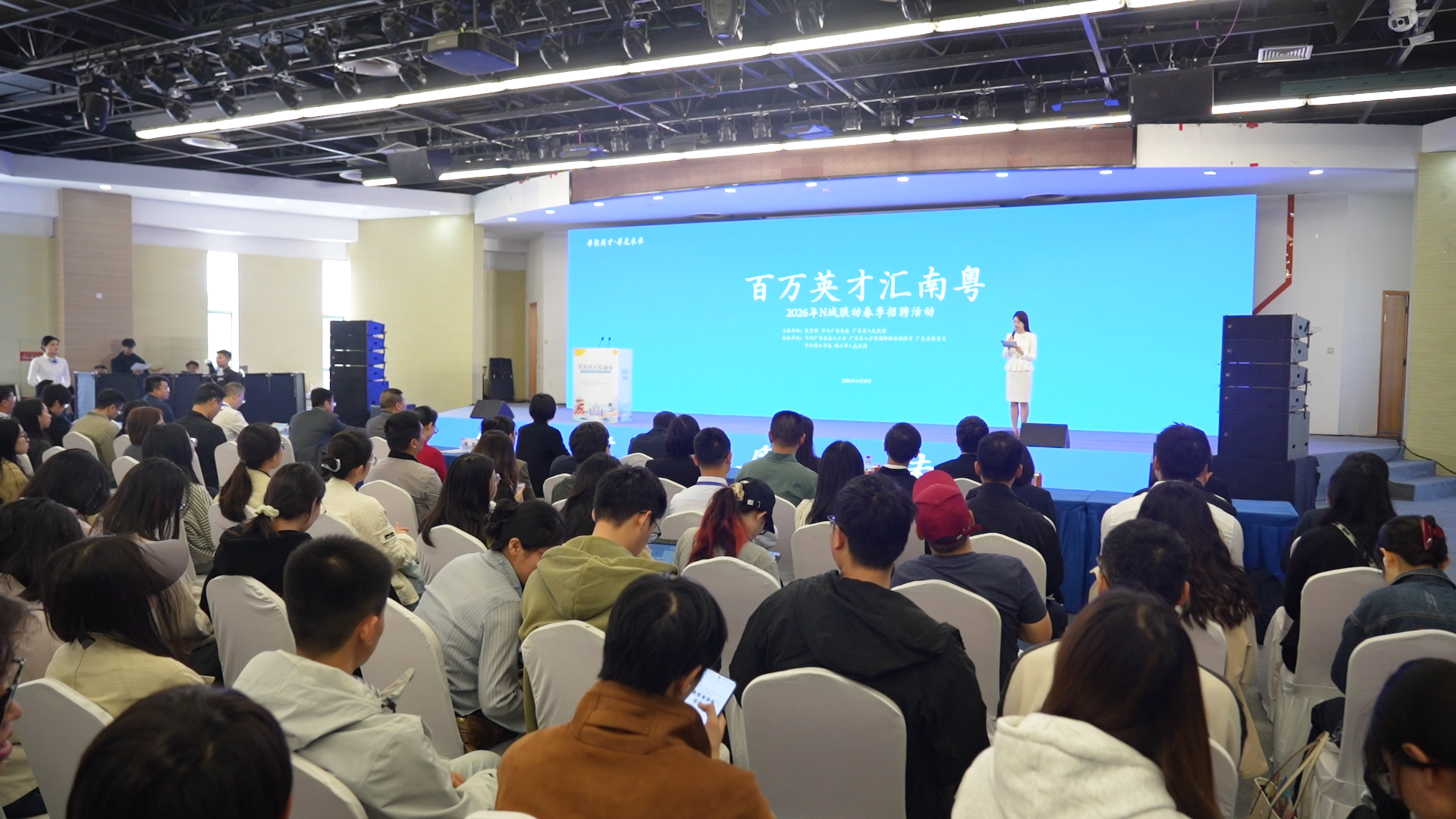 临近上午10时,宣讲会准时开始。一段广东引才宣传片首先点燃现场气氛:珠江两岸的创新园区、忙碌的智能制造车间、灯火通明的实验室……每一帧都在传递南粤的活力与机遇。