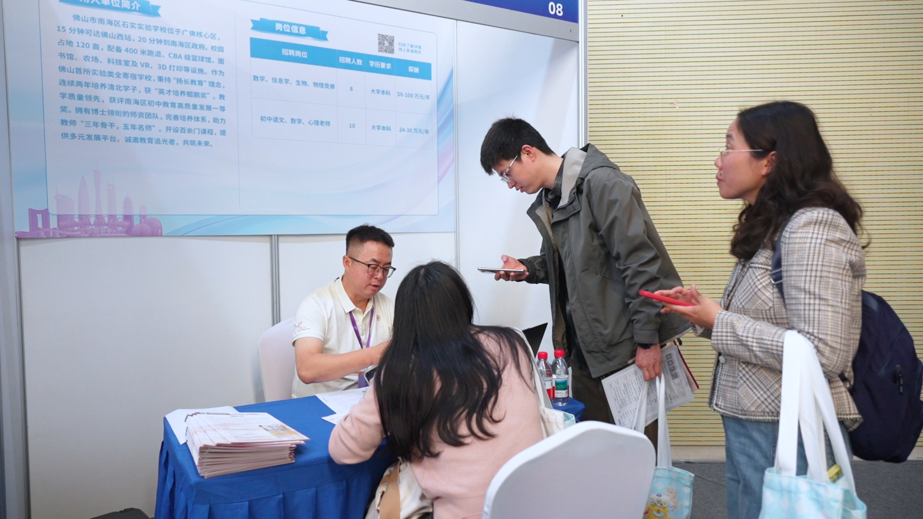 两天招聘,众多优质企事业单位收获满满。佛山市南海区石实实验学校办公室副主任陈彬透露,学校现场收到数十份优质简历,其中有两份来自博士生,目前正在积极沟通洽谈。他特别感谢市政府搭建的优质引才平台,为校地人才合作提供了有力支撑。