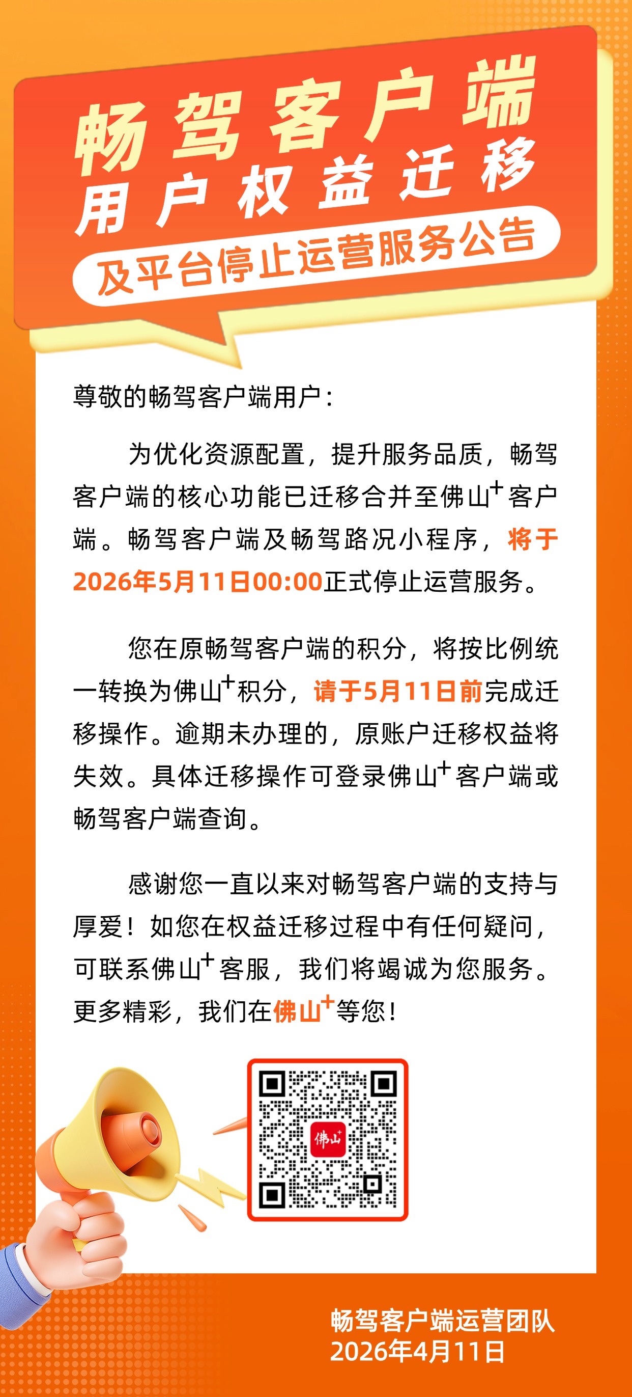 畅驾客户端用户权益迁移及平台停止运营服务公告
