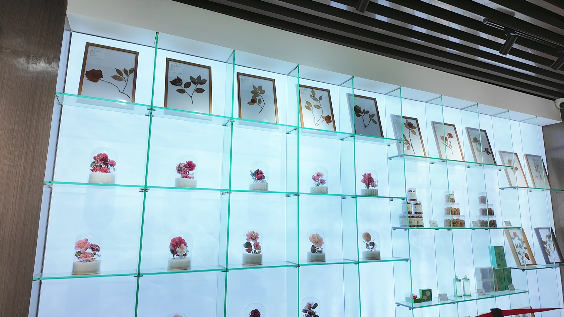 在佛山植物园,茶花文化馆内除了介绍茶花的历史和美照外,还有茶花永生花等文创产品。据了解,佛山植物园对茶花的开发,早已超越单纯的观赏层面,构建起从种质保育、新品种选育,到精深加工、科普文旅的全产业链创新体系,全力推动“绿水青山”向“金山银山”转化。