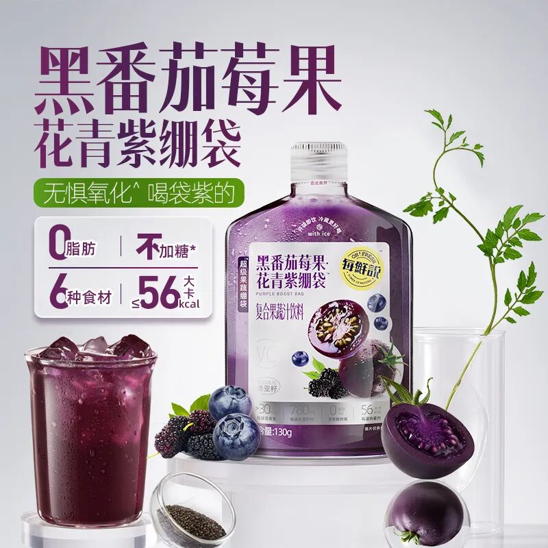 4种热门口味均衡搭配:羽衣甘蓝2袋+芒芒胡萝卜2袋+红石榴车厘子2袋+黑番茄莓果2袋,各种口味任你挑选~
