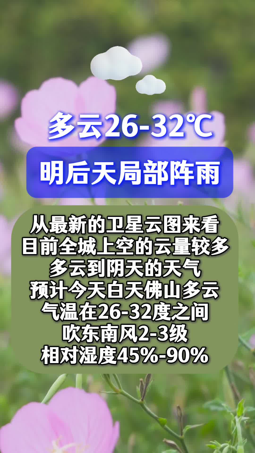 4月11日 佛山天气 多云26-32℃ 明后天局部阵雨