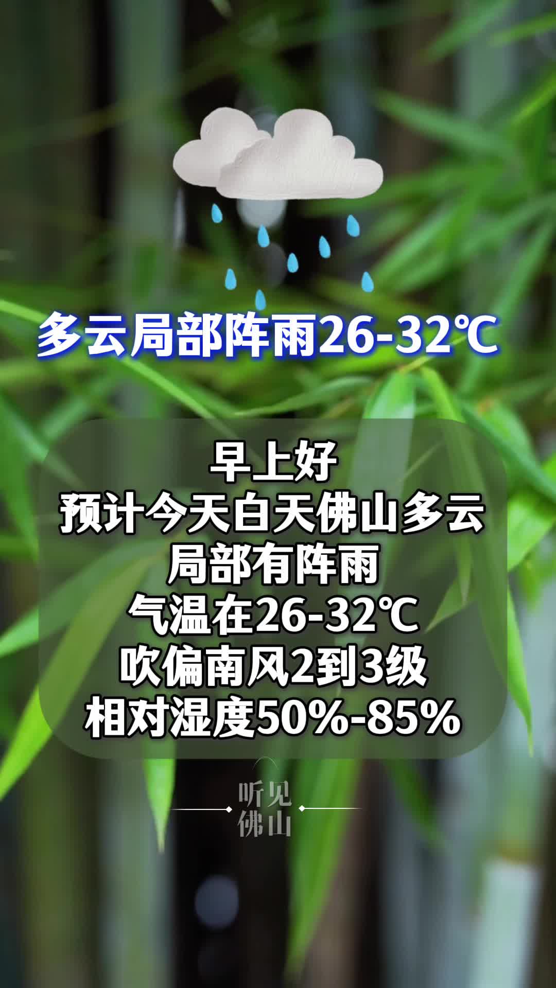 4月12日 佛山天气 多云 局部阵雨|26-32℃