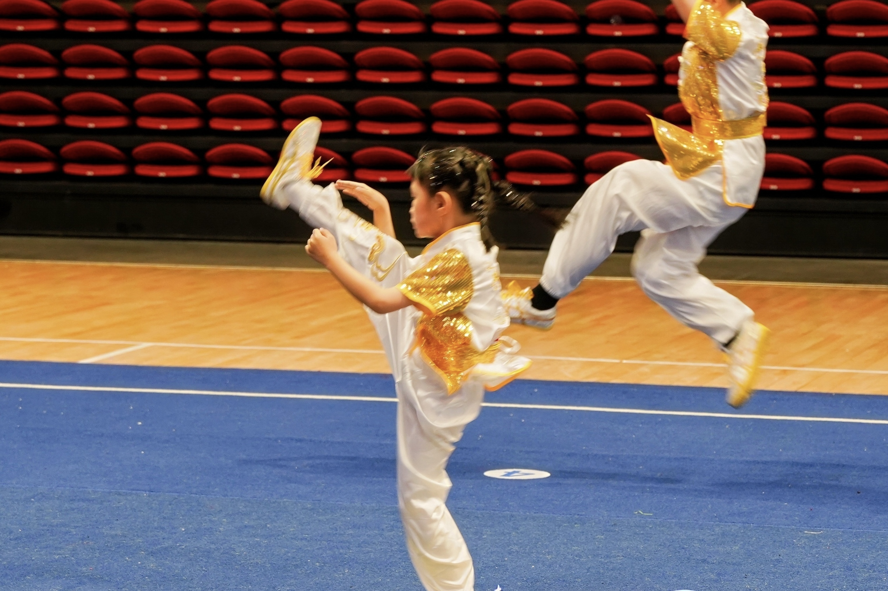 赛场上,各路武林高手各展风采:传统武术套路选手一招一式行云流水,尽显太极拳、洪拳、咏春、蔡李佛等拳种的深厚底蕴;自由搏击选手拳脚铿锵、奋勇拼搏,展现出昂扬向上的体育精神;健身气功选手身姿舒展、气定神闲,诠释着武术修身养性的独特魅力。军体拳项目将军事化训练与中华武术精髓深度融合,新增的武术短兵项目更是亮点纷呈,看点十足。全体裁判恪守公平公正原则,严谨履职、细致评判,有力保障了赛事平稳有序、顺利推进。