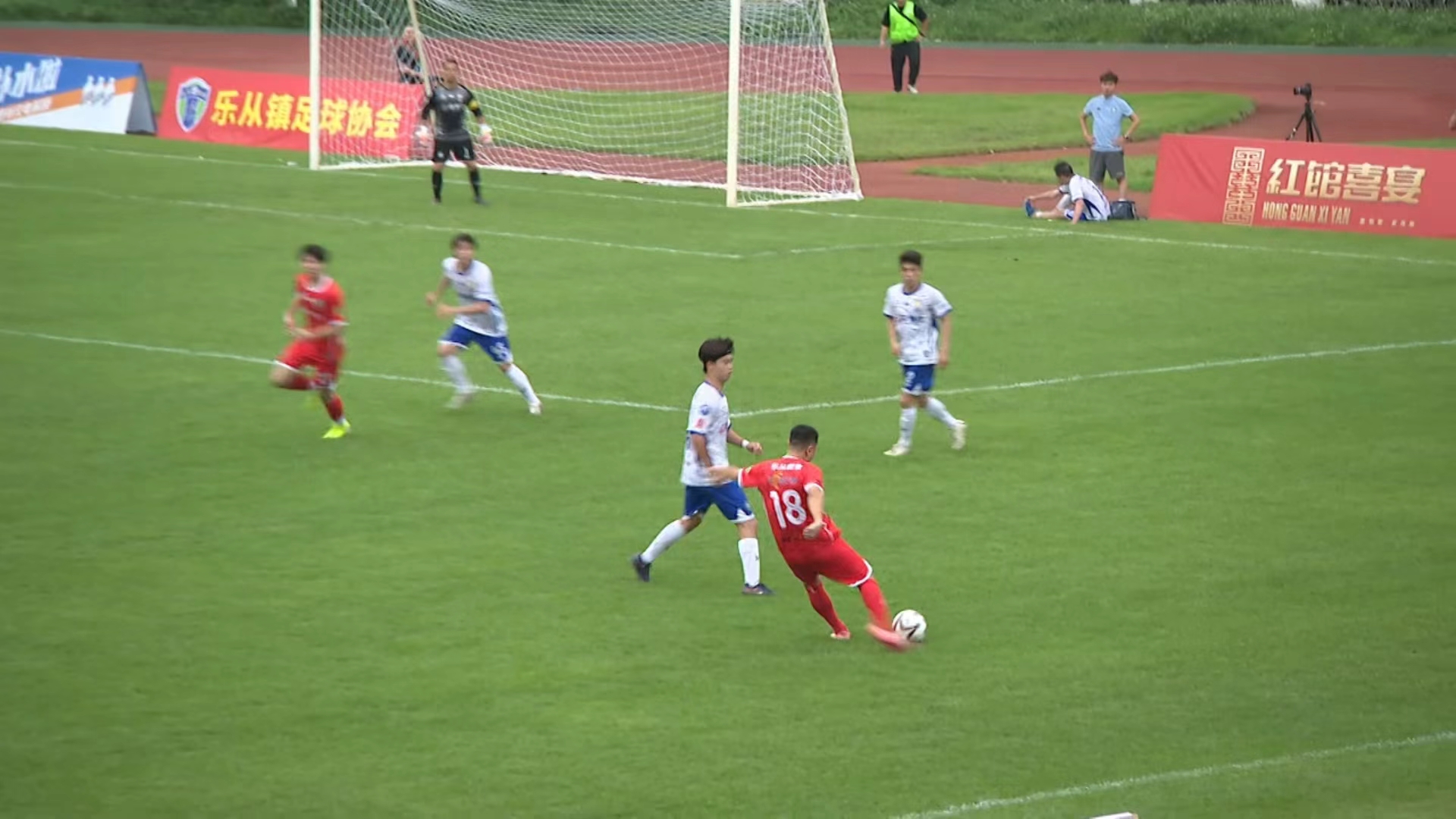 比赛开场前,活力足球舞与铿锵锣鼓表演轮番登场,提前将现场氛围推向高潮。上半场第20分钟,乐从队获得角球机会,88号球员精准传球,38号球员头球破门,拿下乐从主场首粒进球。下半场开场仅2分钟,乐从队再获角球,88号球员开球后,33号球员蹭球至后门柱,22号球员在门前混战中补射得分,将比分锁定在2:0。