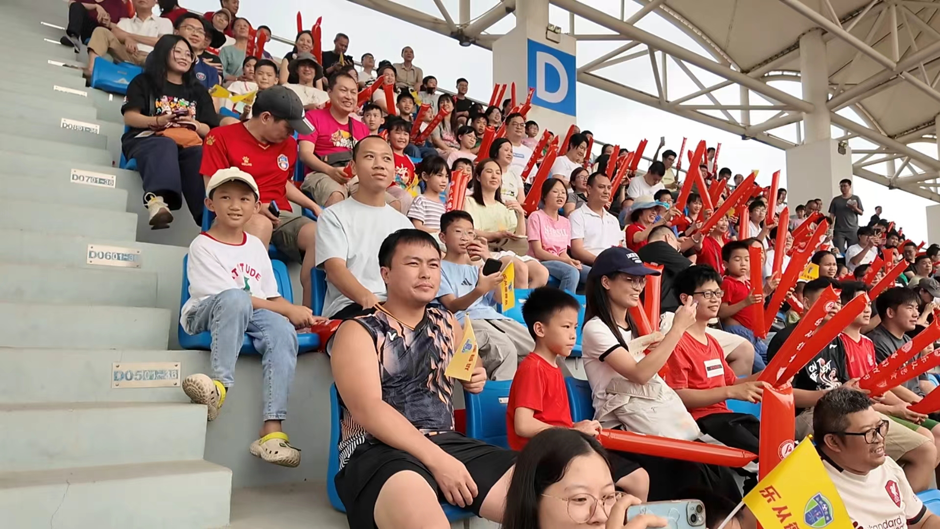 赛场边,超3000名球迷身着红色应援服组成“红海”方阵,高举队旗呐喊助威,成为绿茵场边最亮眼的风景。这场赛事不止是绿茵竞技,更是集文化展演、美食狂欢、全民参与、文旅消费于一体的城市盛宴。