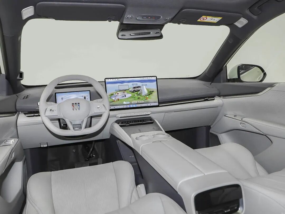 内饰部分,新车采用“全景环抱式”座舱设计,车内提供松烟紫黑以及云上雅米两款配色选择,配备8.8英寸仪表屏、15.6英寸中控屏以及50英寸AR HUD,前排空调出风口和方向盘采用与别克至境L7类似的设计,为三辐式多功能方向盘,全车搭载7.1.4杜比全景声20扬声器环绕音响以及256色氛围灯,科技感十足。辅助驾驶方面,新车搭载由Momenta R6强化学习大模型赋能主动安全系统,拥有高速、城区、泊车等全驾驶场景。