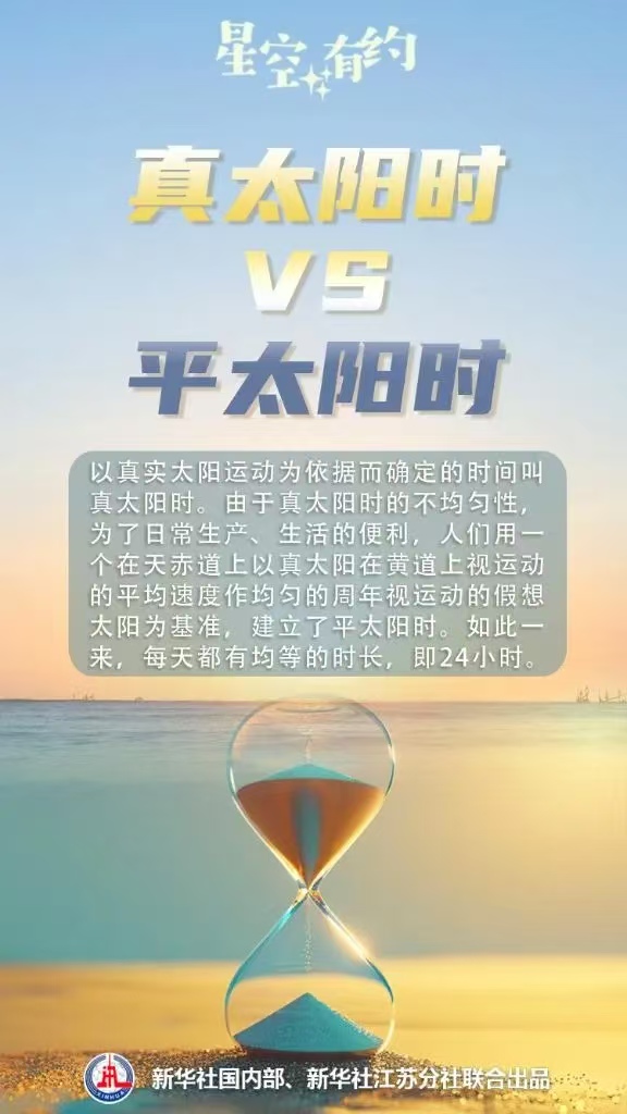 何永杰解释,人们日常使用的钟表时间,是为了生产生活便利制定的区时,即所在时区中央经线的地方平太阳时,每天都有均等的24小时。而地方时是指按本地经度测定的时刻,其差异由地球自转导致不同经度区域的时刻不同,经度每相差15°,时间则相差1小时;经度每相差1°,时间则相差4分钟。