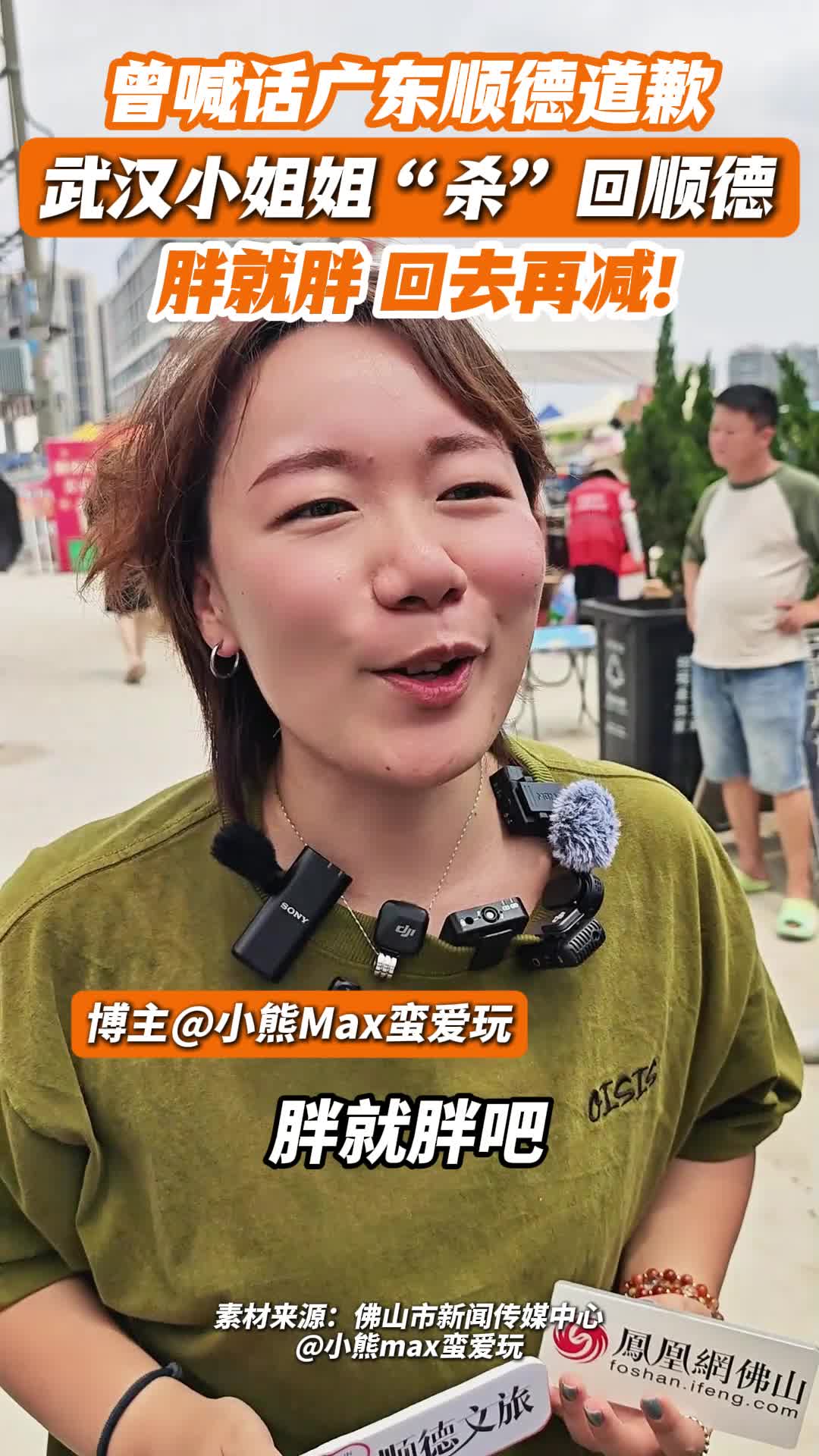 曾喊话广东顺德道歉!武汉小姐姐“杀”回顺德,胖就胖,回去再减!