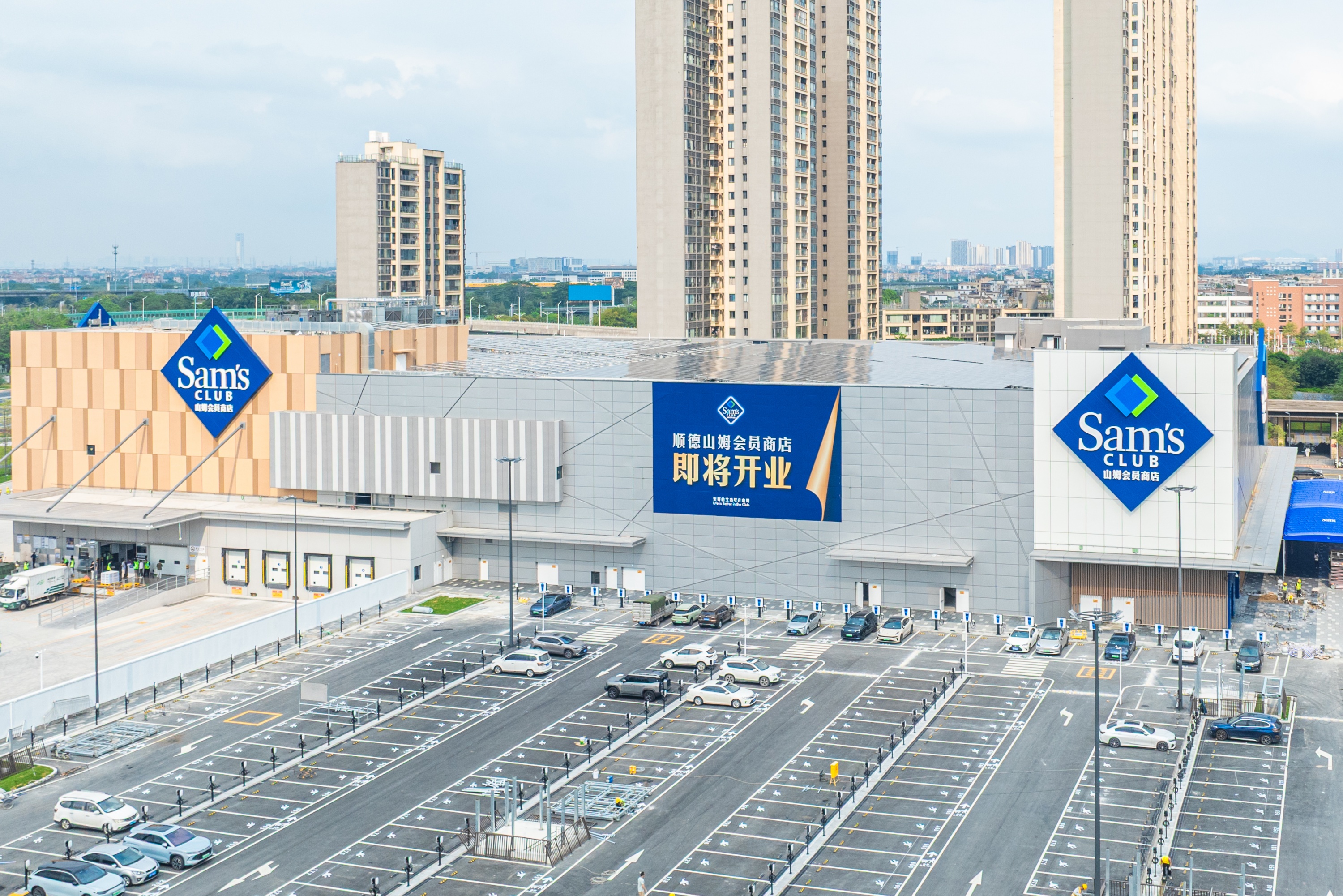 4月的顺德,春意盎然。在碧桂路与南国东路交叉口东南角,一座蓝白相间的巨型建筑格外醒目——佛山首家山姆会员商店顺德店正在进行最后的内部保洁和设施调试,标志性的蓝白招牌已在阳光下熠熠生辉。