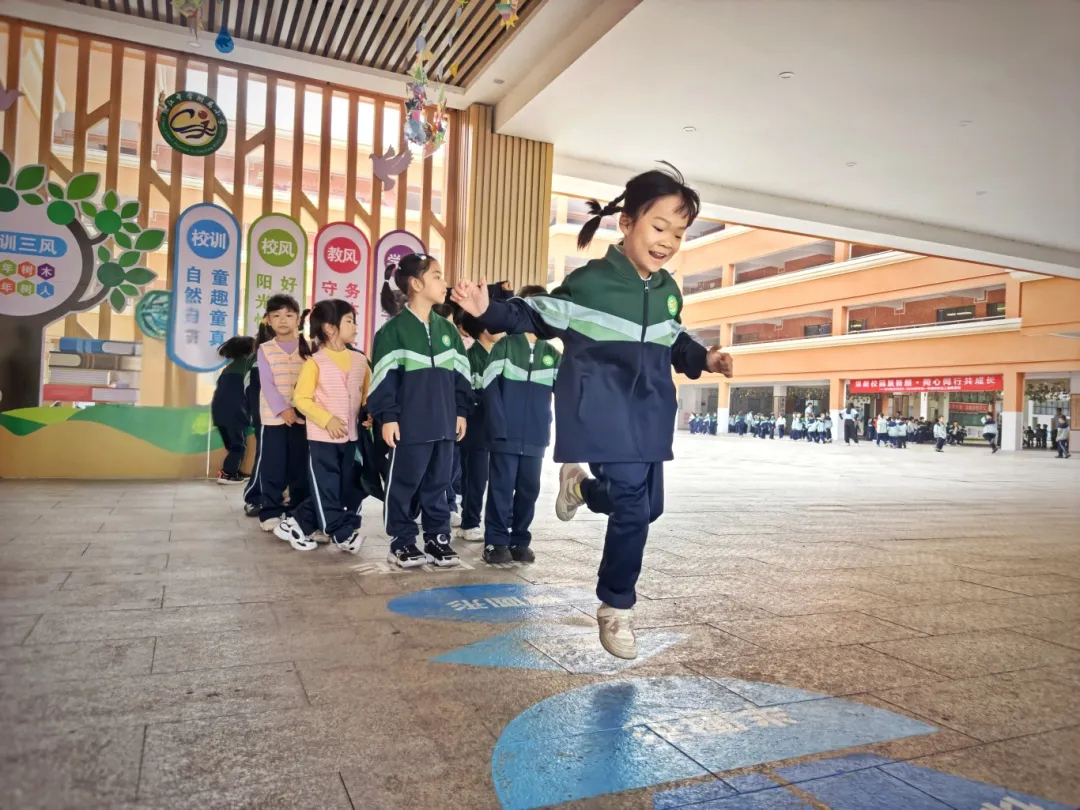 为创造更好的运动条件,沧中附小利用操场、校园廊道等场地,在地面绘制跳房子、数字格、交通安全飞行棋等彩绘游戏图案,并将跳绳、武术与语文、数学元素相结合,让学生无需器材即可享受“运动+益智”的双重乐趣。