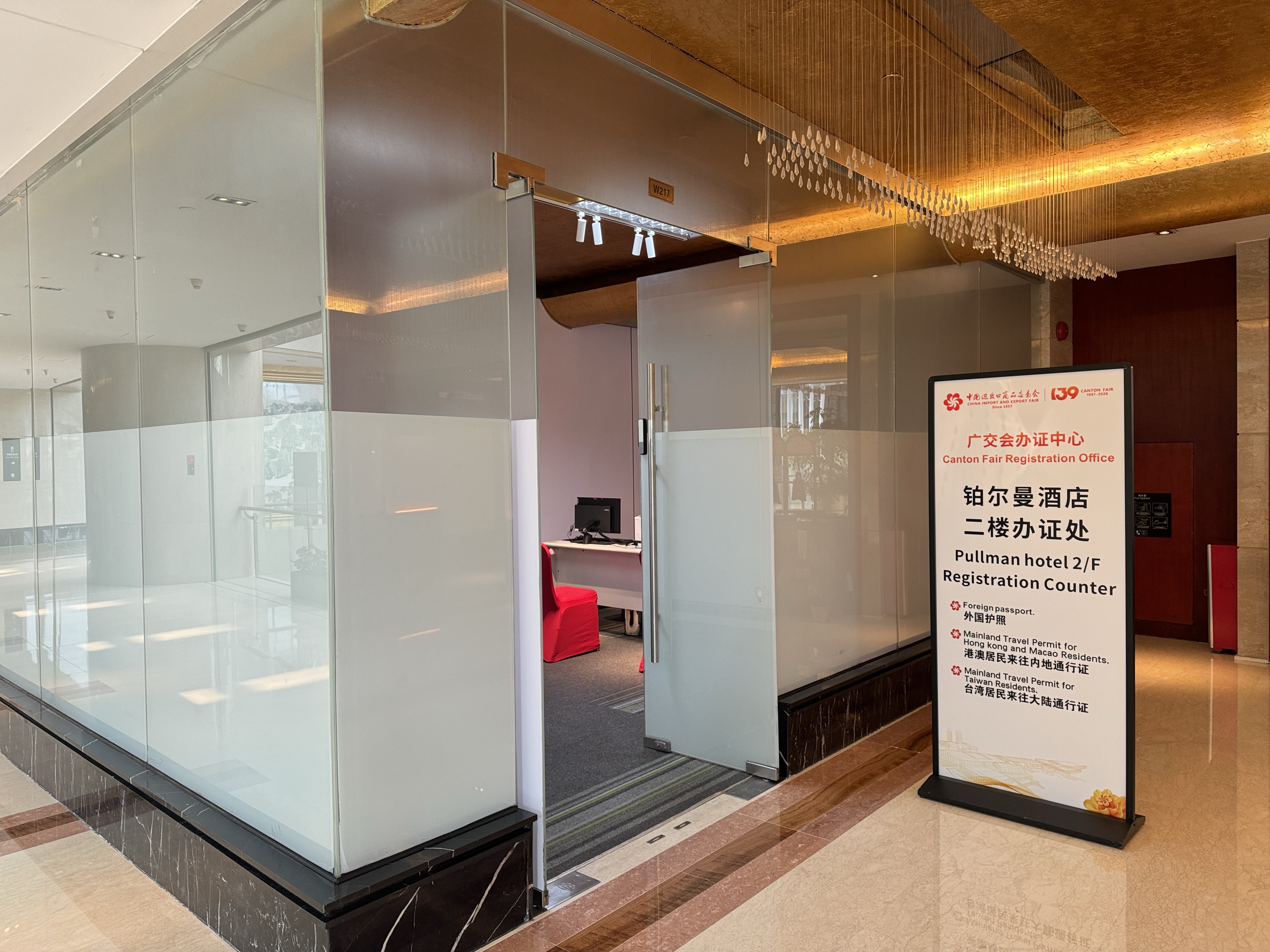 除了航站楼内的双点布局,位于机场周边的广州白云机场铂尔曼大酒店也在二楼设置了人工验证柜台,为入住酒店的采购商提供了下楼即办的额外选择。