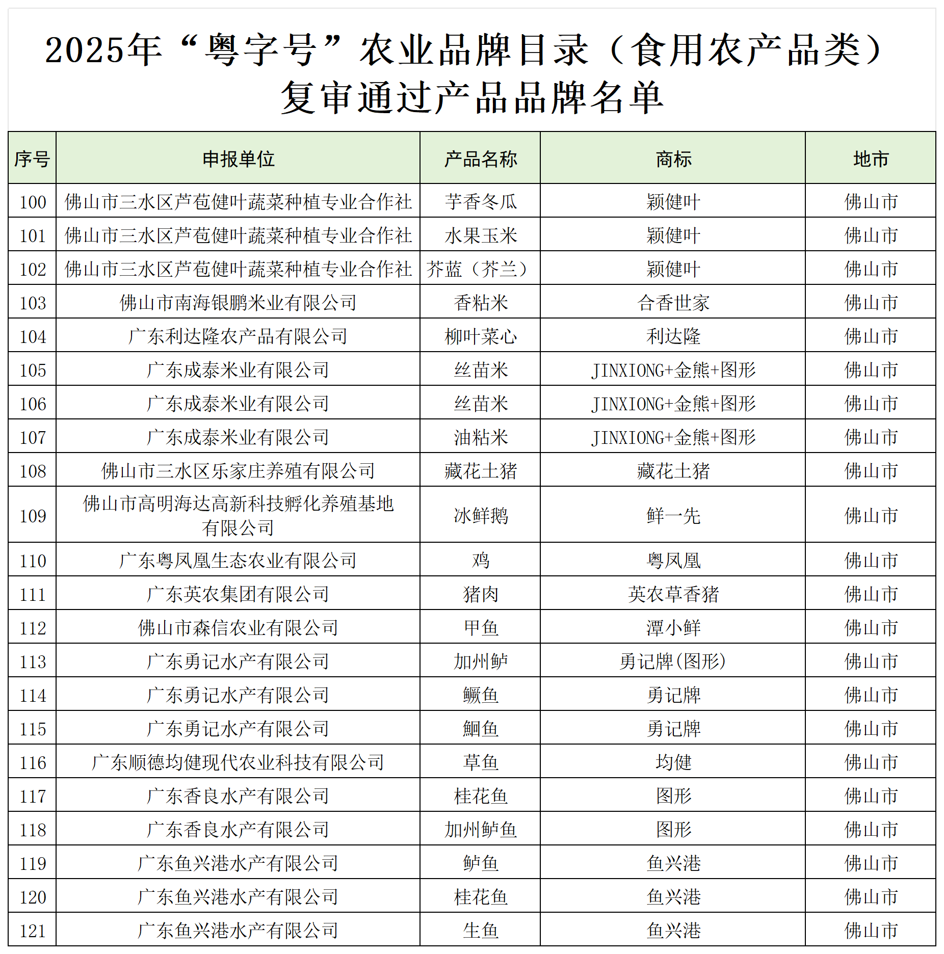 佛山26个产品品牌入选!2025年“粤字号”农业品牌目录公布