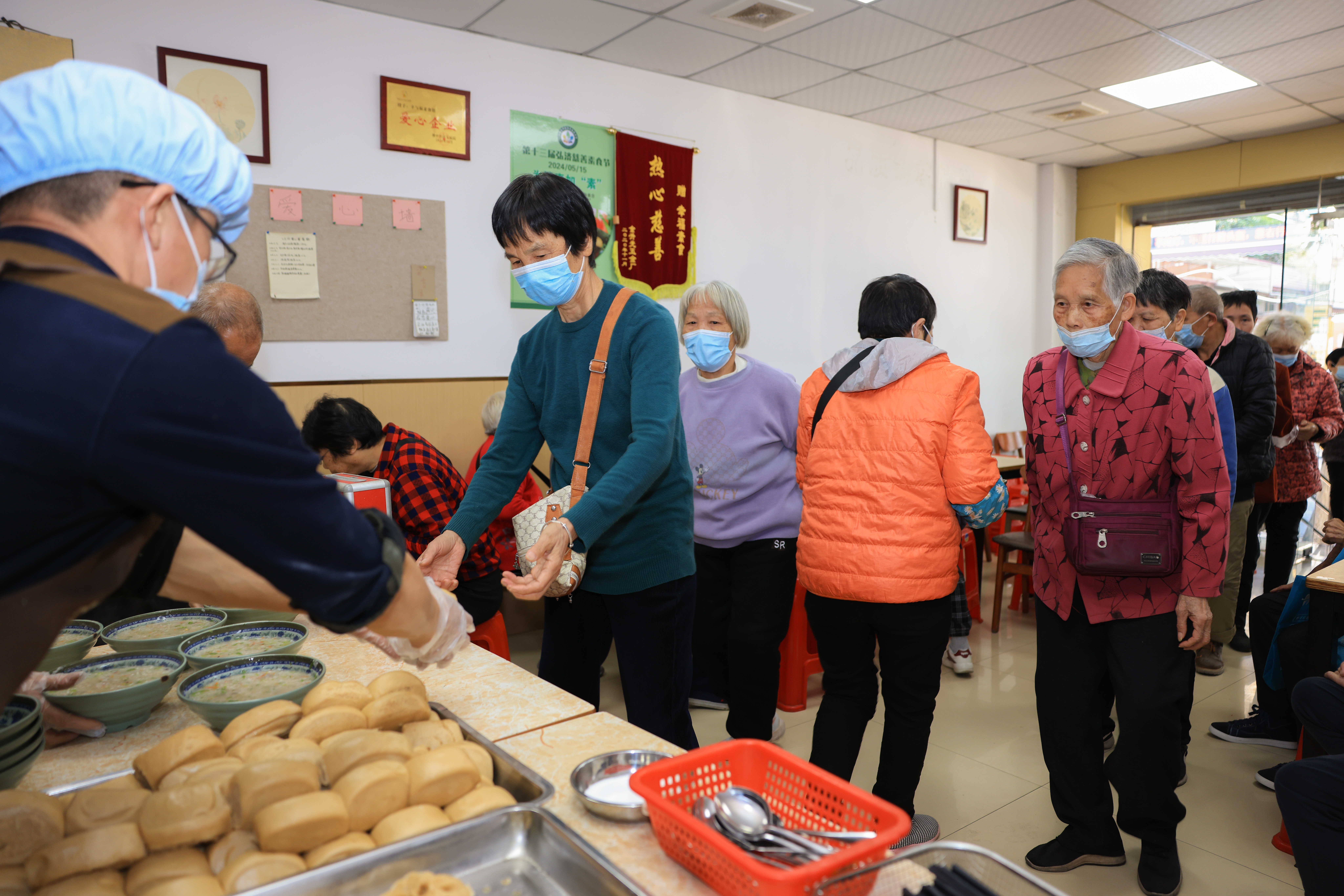 一份餐,温暖一群人;一群人,回馈这份温暖。菜农送来刚摘的蔬菜;社区、周边商铺主动介绍需要帮助的家庭;吃了爱心餐的九婶,会多打包两份带给卧床的邻居;环卫工人黄大姐抽空就来帮忙打扫;隔壁店铺也腾出门口空地,让大家吃饭时有地方坐。