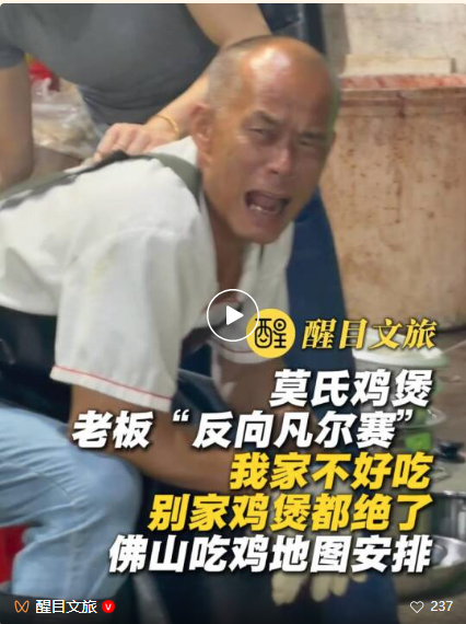 老莫火了。顺德陈村的莫氏鸡煲,成了全网最热门的打卡地。店铺单日客流冲到3000人,日均开围近200桌。话题播放量达数亿次,数百个热搜轮番上榜。有网友凌晨四五点就来拿号,也有人驱车数百公里赶来。