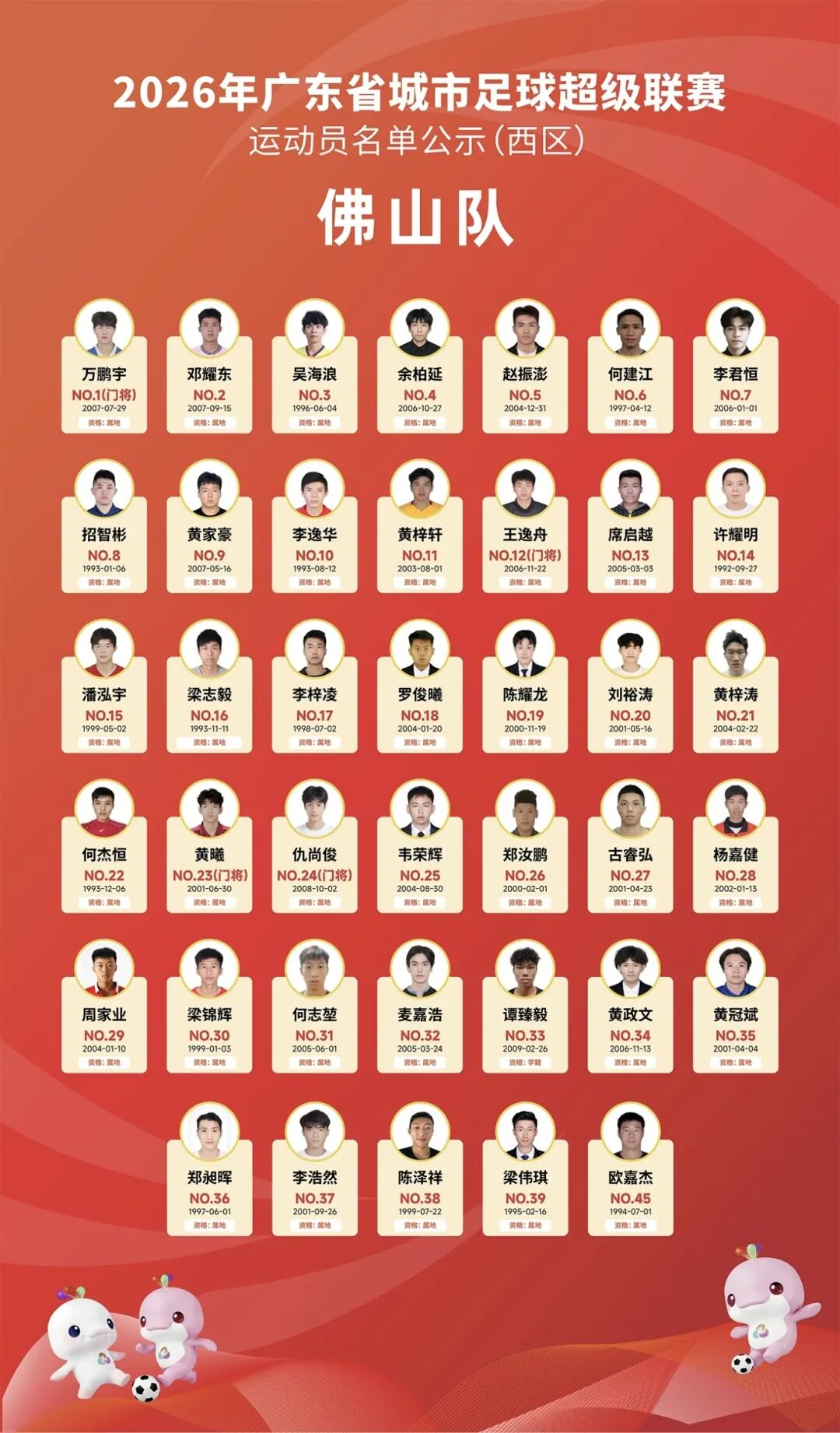 小将仇尚俊来自高明荷城王臣村,2008年出生,身高186厘米,司职守门员,是国家一级运动员。他从高明区一中附小和区少年体校起步,一步步走上更高平台,2024年入选广东省队U18全运会集训队,2025年先后代表佛山队夺得广东省第十四届中学生运动会男子足球冠军,代表广州豹足球俱乐部拿下广东省青少年足球联赛男子U17组冠军,并获评该项赛事最佳守门员,是佛山队年轻一代门将中的潜力新星。