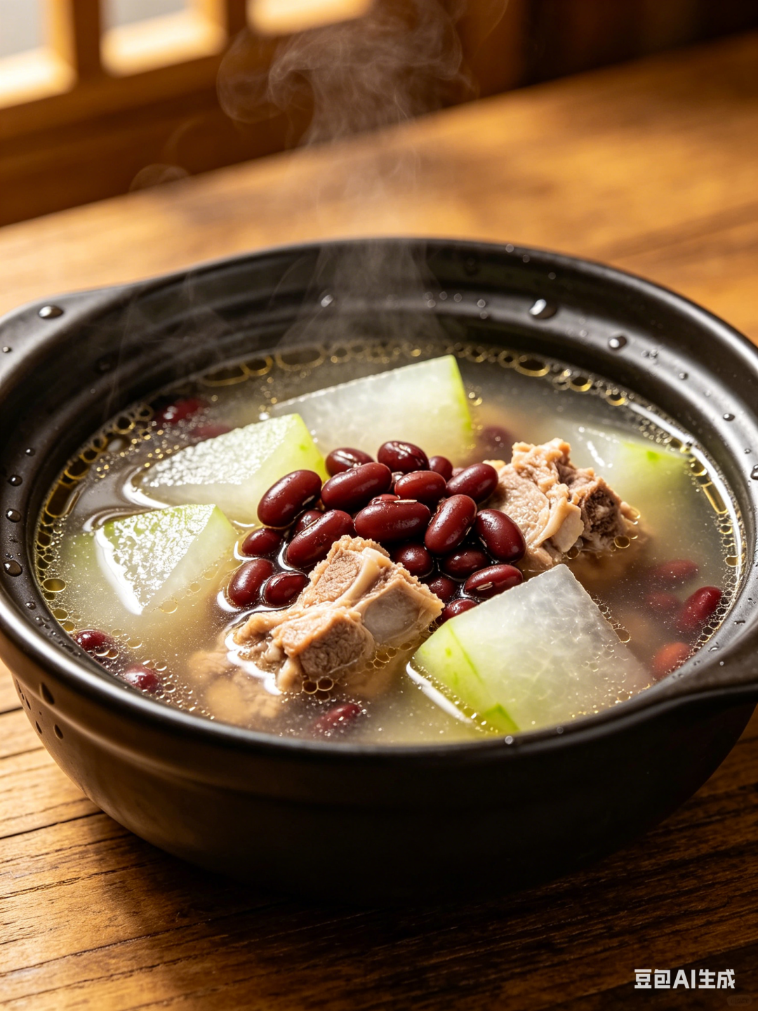 ⭐️做法:排骨焯水,赤小豆提前泡30分钟;先煮赤小豆与排骨40分钟,再加入冬瓜煮20分钟,加盐调味即可。