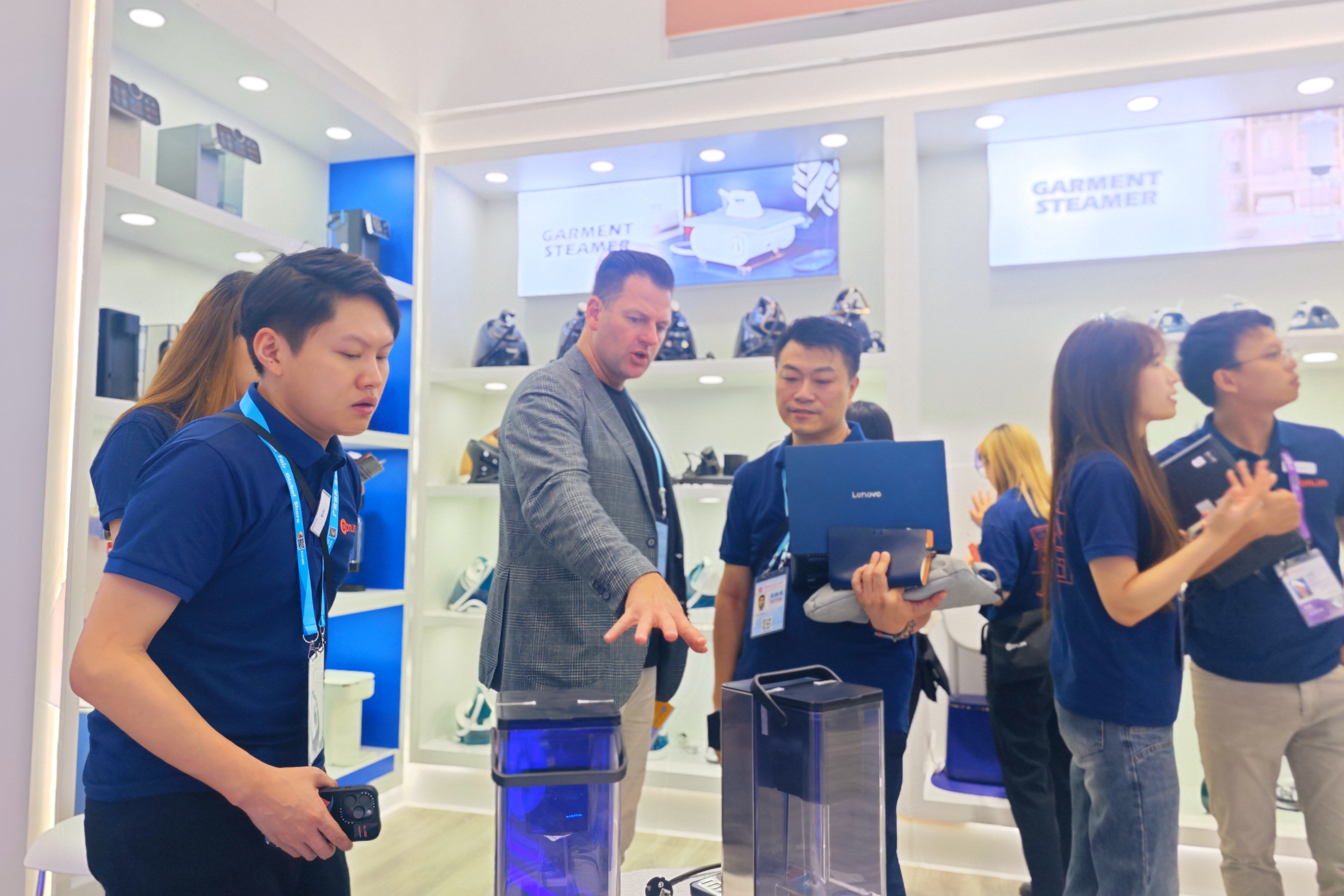 小家电出口龙头企业新宝股份参展产品涵盖厨房电器、个人护理、宠物电器、母婴电器、生活电器、园林工具等产品线,划分为多个主题区域。新宝首次推出智能识布蒸汽站,通过高清摄像头对布料采集数据,由AI通过采集数据进行比对分析,自动适配对应的温度及蒸汽档位;全面升级智能割草机器人,搭载全地形自适应系统,通过智能自适应技术征服复杂地形,实时监测并绕过障碍物,远程启动割草任务。