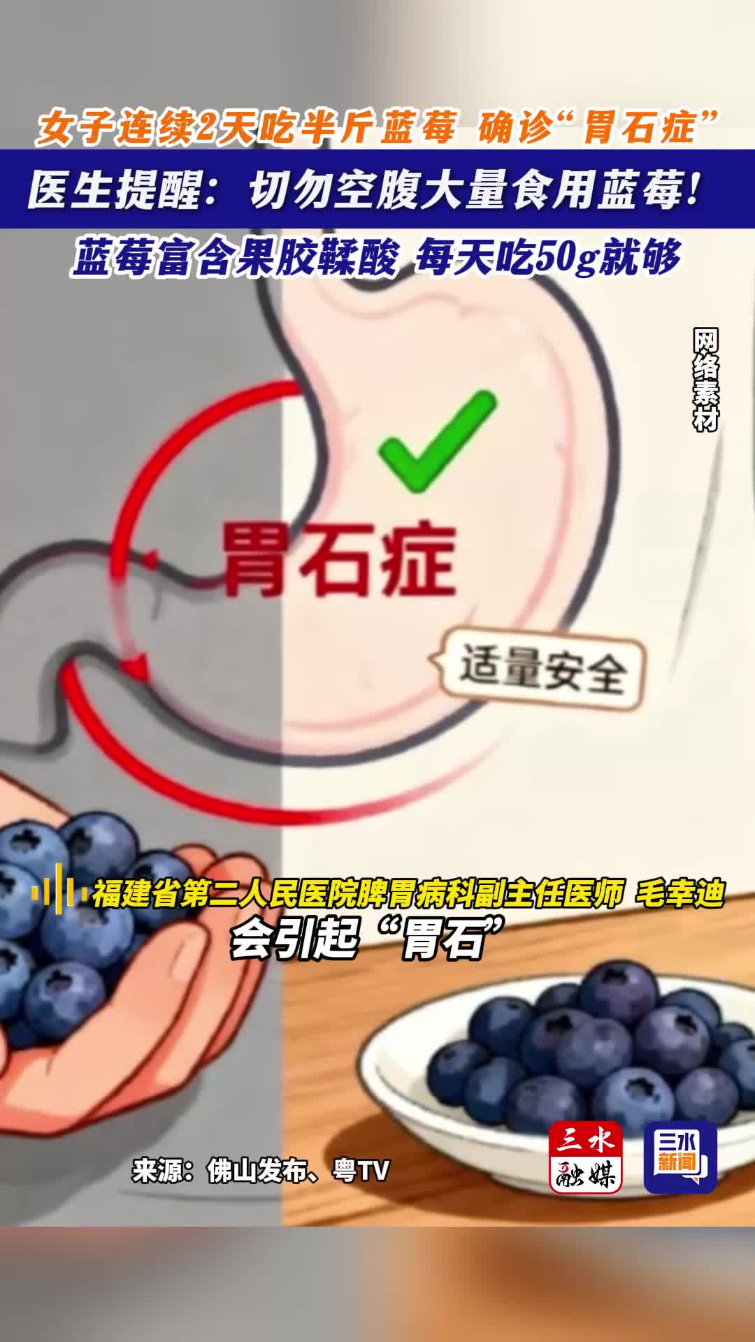 女子连续2天吃半斤蓝莓确诊“胃石症”,医生提醒切勿空腹大量食用