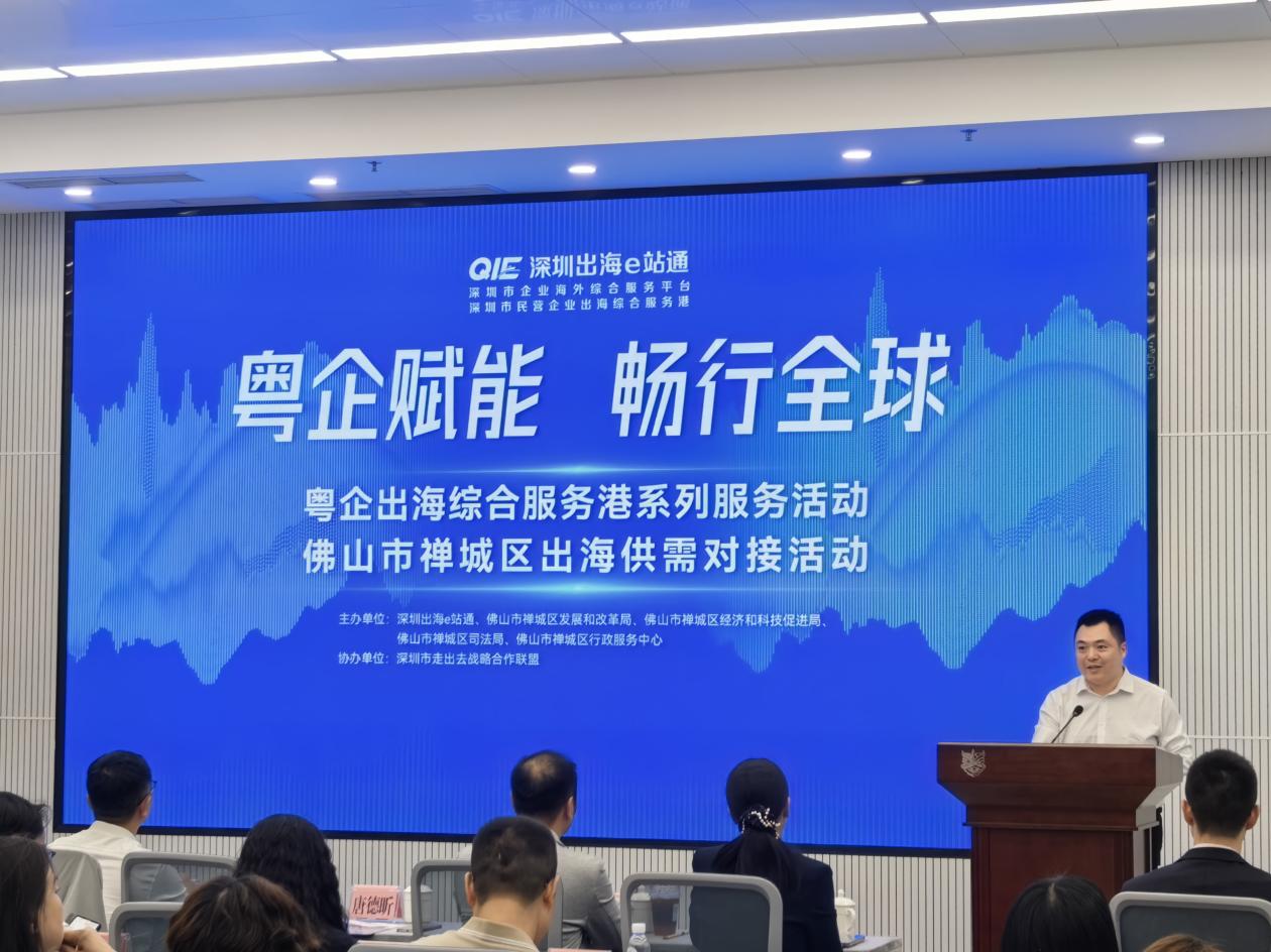 4月14日下午,“粤企赋能 畅行全球 粤企出海综合服务港系列服务活动——佛山市禅城区出海供需对接活动”成功举办。本次活动由禅城区发展和改革局联合省级平台深圳出海e站通共同主办,立足深佛产业互补优势,紧扣企业出海核心痛点,搭建政企对接、湾区联动、资源共享的沟通桥梁,精准输送优质国际化服务,助力佛山制造稳步走向全球。