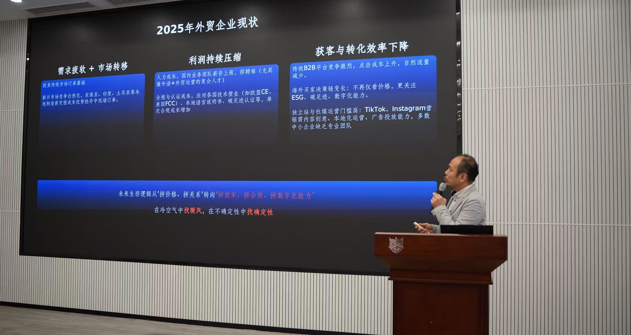 阿里巴巴国际站香港区域经理文成樑以《全球贸易新趋势和AI时代外贸机遇》为主题进行分享。