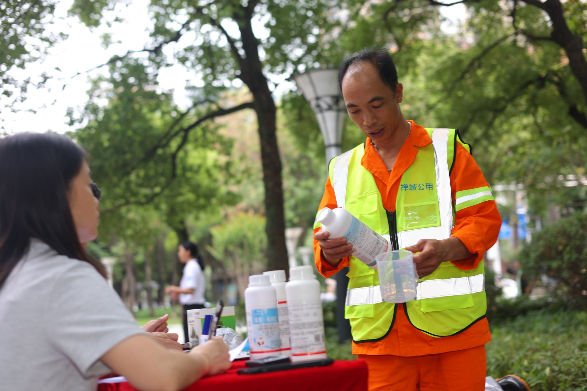 在区级决赛现场,主办方设置了个人竞赛和团体竞赛两大板块,全方位考验个人专业功底与团队协作能力。其中,理论知识及个人技能实操考核环节,内容涵盖登革热等蚊媒传染病防控基础知识、技术规范、安全用药等,重点考核参赛人员对蚊虫孳生地治理、消杀器械规范操作、消杀策略选择等综合理论素养及实际操作。