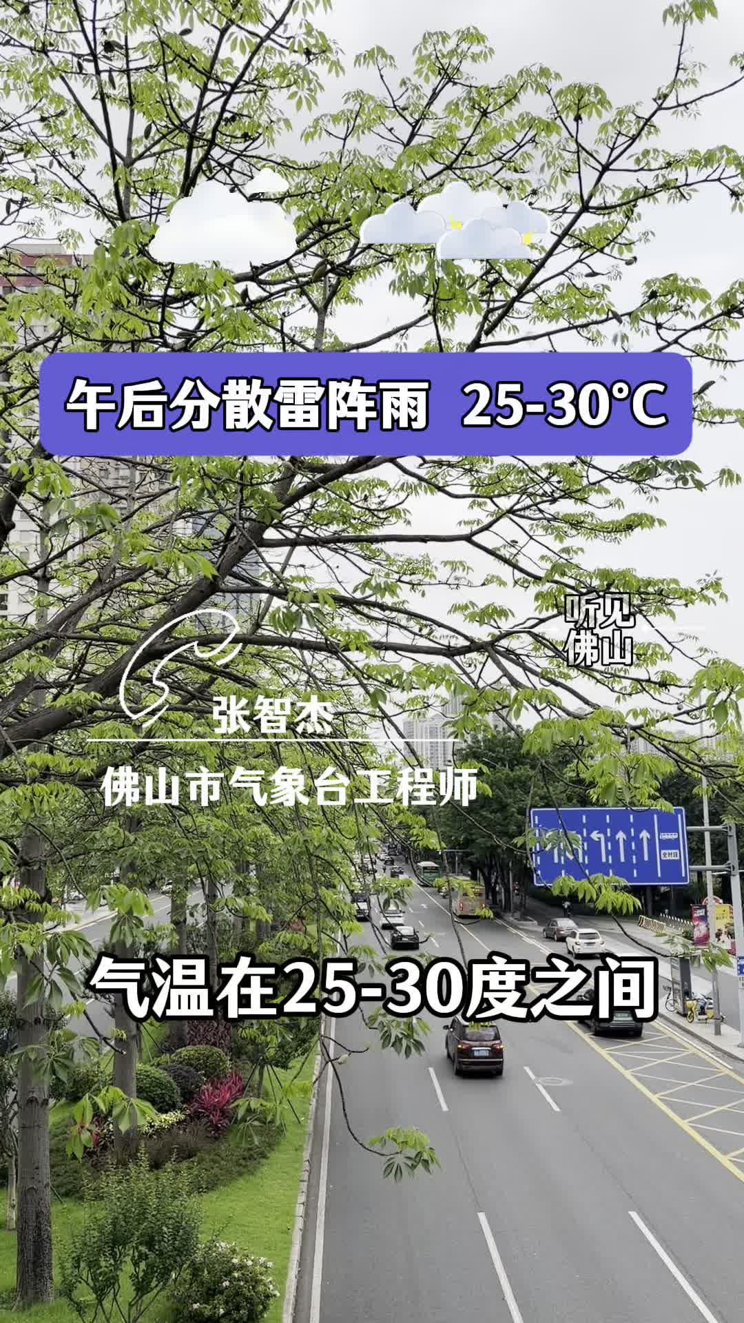 4月16日 佛山天气 25-30℃ 下午到傍晚分散雷阵雨