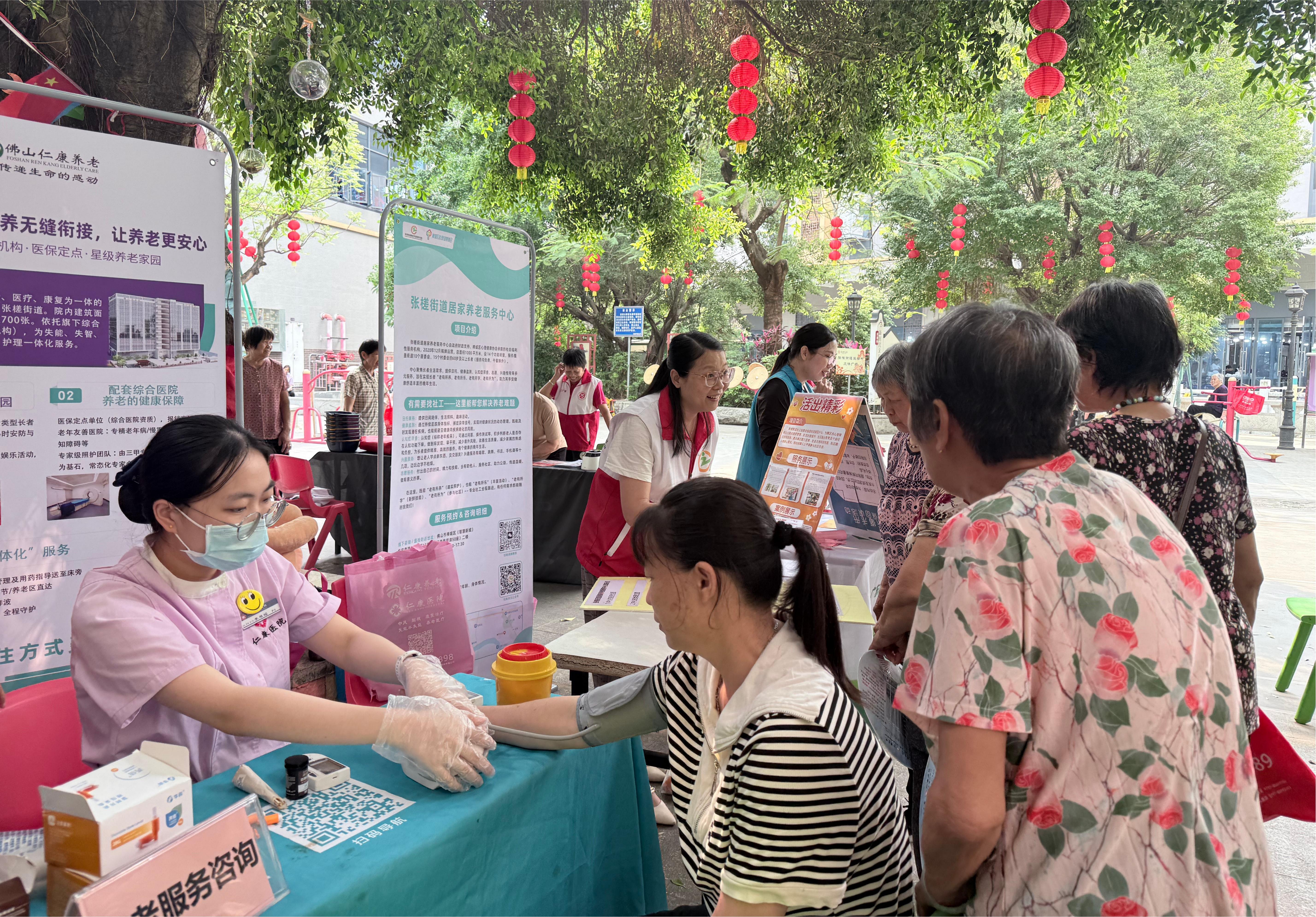 与此同时,健康服务区也排起了长队。仁康医院的医护人员耐心细致地为长者们进行免费的血压、血糖测量等基础健康筛查,并根据结果提供个性化的健康养护和养老建议,将专业的医疗服务送到了长者家门口。