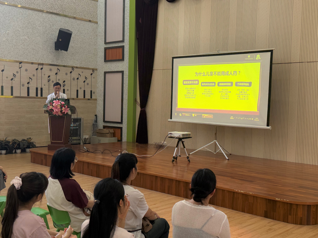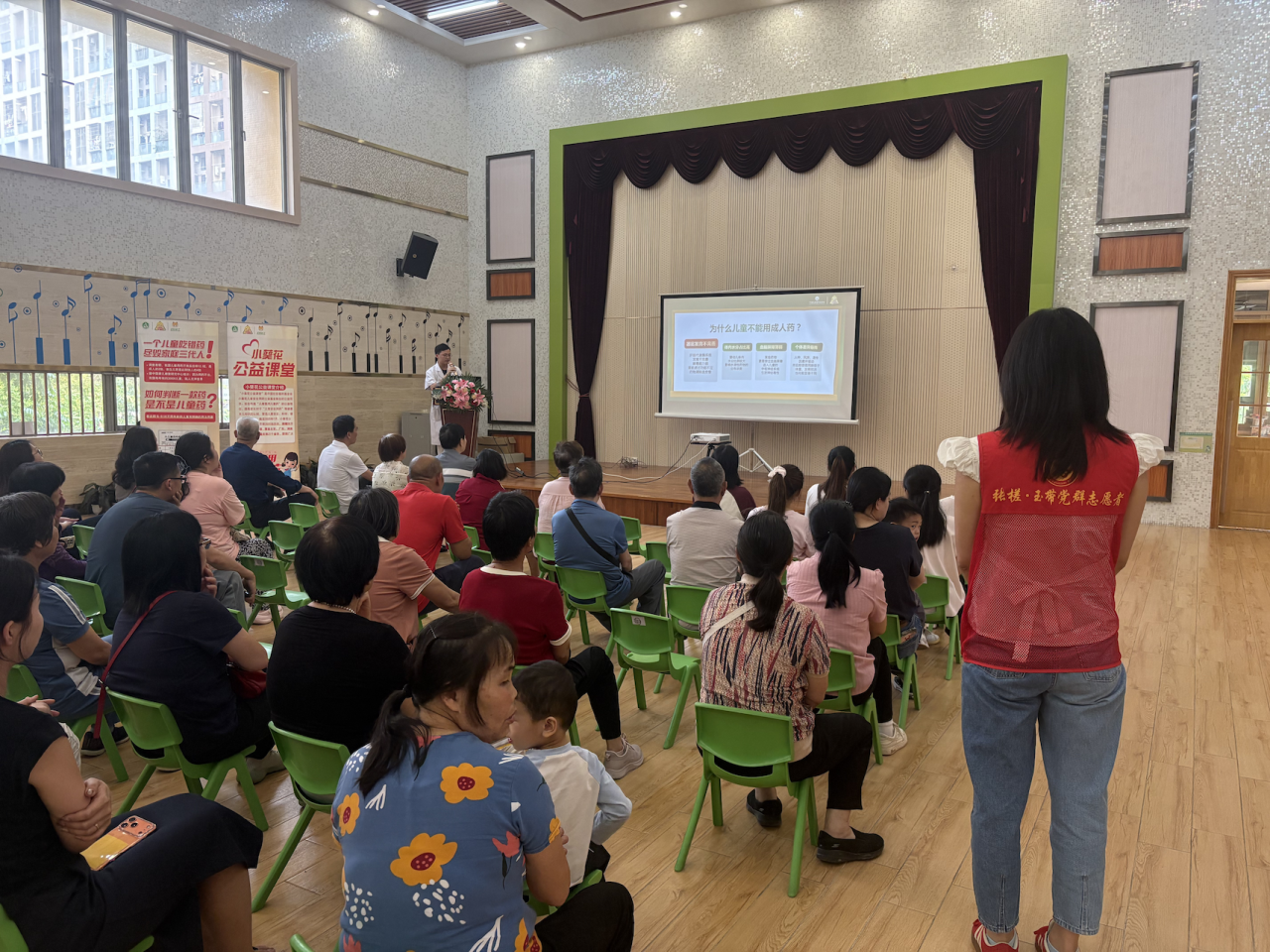 现场近70名家长参与课堂,药师冼奋辉围绕儿童用药时机、药品说明书解读、常见病对症选药等核心内容展开讲解,解答了家长关于退烧药使用、药物联用等高频疑问,还分享了家庭小药箱储备技巧。