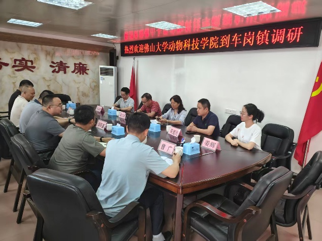 调研首站,佛大一行与车岗镇党委政府开展座谈。车岗镇党委书记邹钰鑫详细介绍了该镇实业发展现状及未来发展规划,坦言车岗镇在农业产业化、新型工业化推进中成效显著,但亟须高校科研力量和专业人才“破局”。“我们特别关注佛山宠物经济的发展成效,希望能借鉴佛山经验,推动车岗镇宠物产业弯道超车。”邹钰鑫的话,道出了地方发展特色产业的迫切需求。