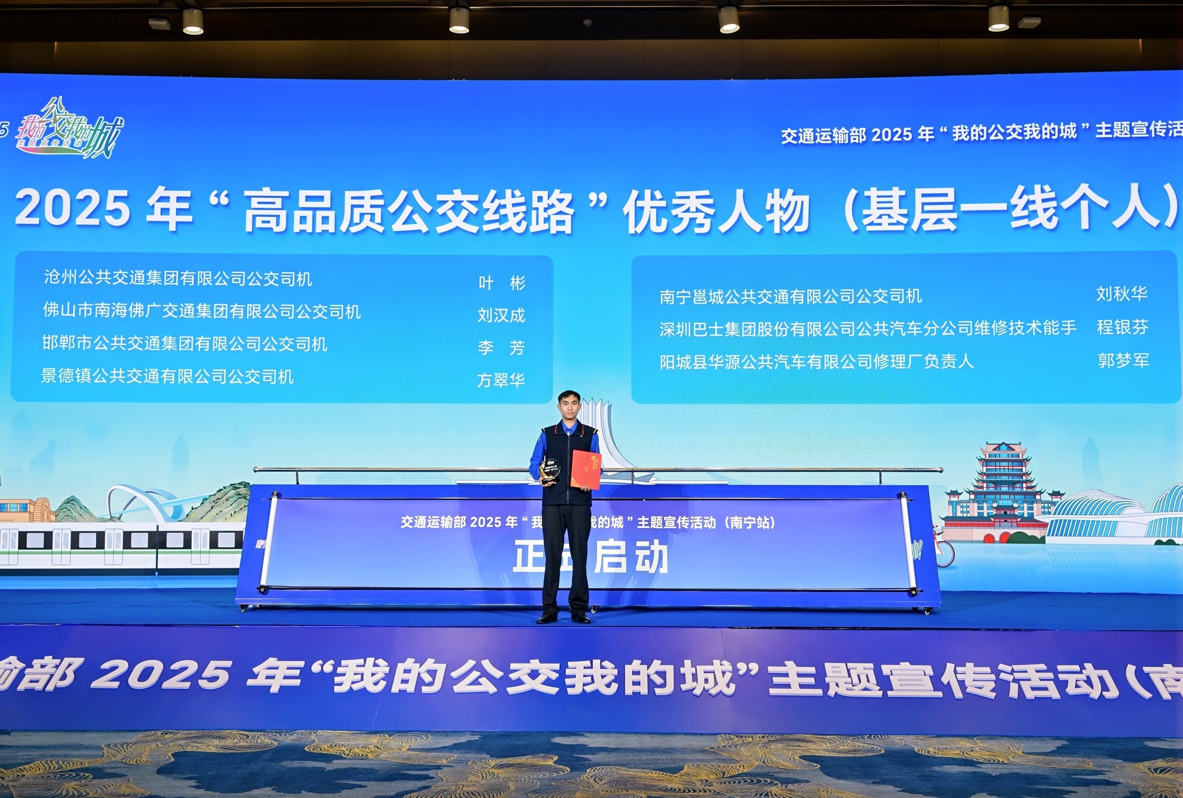 刘汉成凭借过硬的驾驶技术先后荣获2022年“广东省向上向善好青年”、2022年“佛山市十佳文明公交驾驶员”、2025年全国“优秀公交人物”等八项市级以上荣誉,充分展现了新时代公交人的责任担当与职业风采。