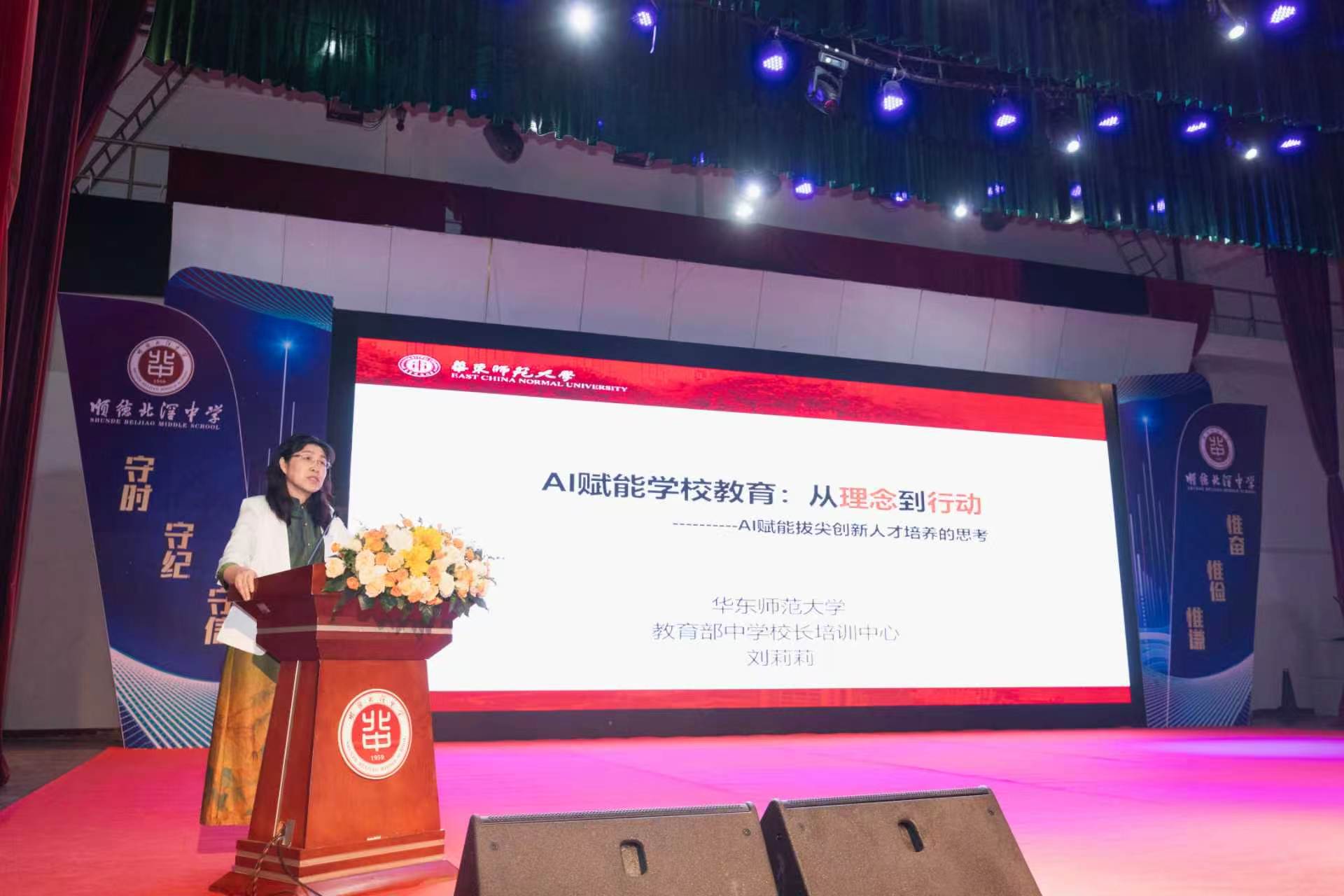 开幕式上,华东师范大学教授、教育部中学校长培训中心副主任刘莉莉作前沿分享,并对北滘中学的实践给予充分肯定。她表示,本次研讨会最大的意义,在于让大家看到AI时代优质教育资源可平等触达,教师能够等距离对接名师与前沿课堂。她提出,AI具有两面性,教师要驾驭AI而非依赖AI,借助技术精准诊断学生需求、分析问题根源,提升教学实效。