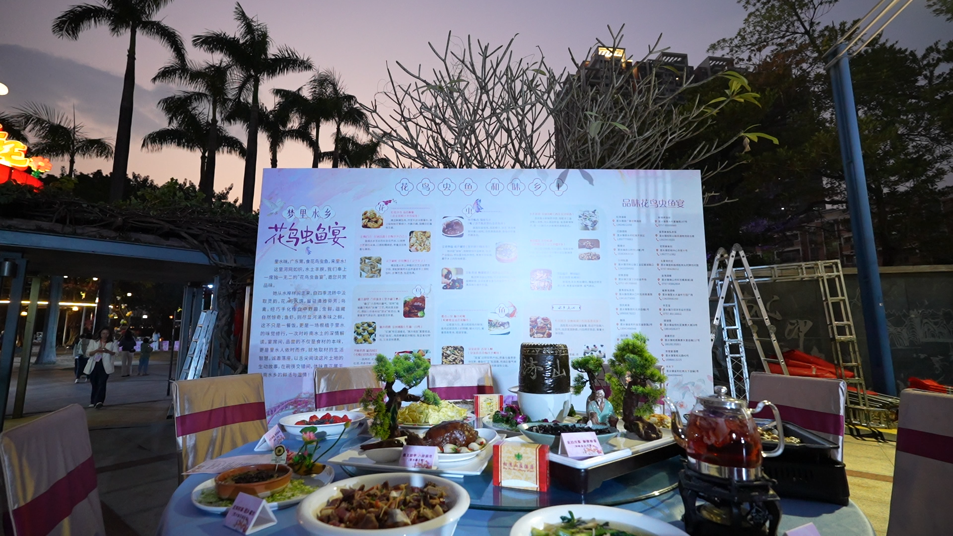 烟火气里,“村菜” 飘香,里水汇集镇内名厨合力打造“花鸟虫鱼宴”,围绕花、鸟、虫、鱼四大系列展开呈现,推出了“花鸟虫鱼宴”系列小吃,如和味金边龙虱、钵仔焗禾虫、阳光鸡、鱼蓉羹、水乡鱼渣等多种特色水乡美食,以里水本土特色食材为根基,尽显水乡风味底蕴。