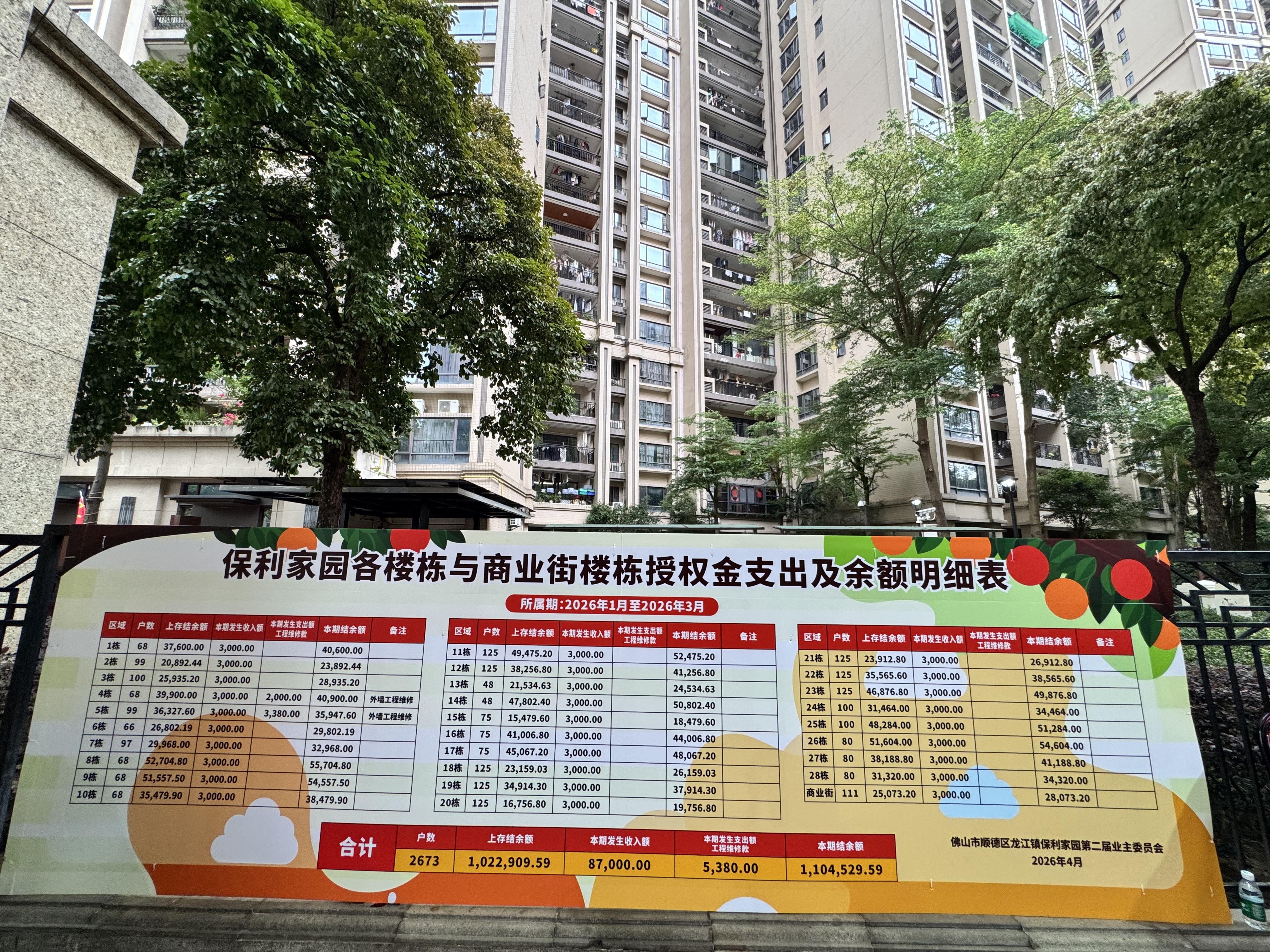 佛山市顺德区龙江镇保利家园小区近五年公共收益累计达450万元。2026年4月17日至18日,小区计划向2600多户业主(含住宅、商铺业主)发放275万元现金分红,单次分红金额相当于物业三个月的管理费,部分拥有多套物业的业主分红超8000元。