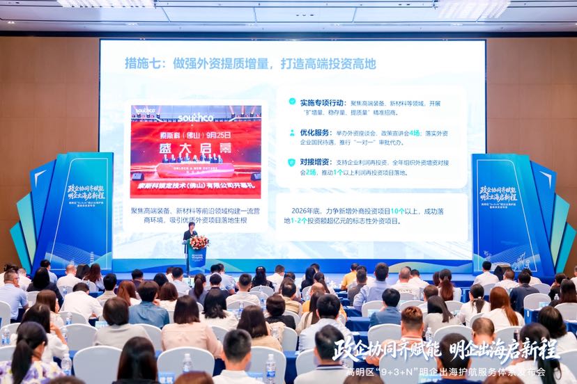 2026年是“十五五”规划开局之年,企业出海进入规模化布局新阶段。高明众多企业积极开拓国际市场,但仍面临诸多现实困难。为此,区委、区政府整合多方资源,打造“9+3+N”明企出海护航服务体系,为企业提供全链条、一站式出海服务。