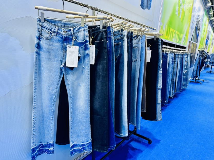 同为参展企业的名杰纺织,此次首次携牛仔文创系列亮相,实现专业面料功底与原创文创设计的深度融合。企业以大数据打造智能化制造工厂,不止于深耕传统牛仔面料领域,更从优质面料供应向文化创意、时尚设计延伸,将牛仔材质、工艺美学与文化创意融入产品表达,彰显从“面料制造商”向“时尚文化创造者”的品牌升级。佳运纺织则带来机器人穿着展示、AI模特、AI云裳等新技术应用,现场直观呈现面料到成衣的转化效果,叠加抖音、淘宝等电商直播“即买即秀”,加速成果转化。