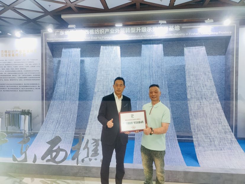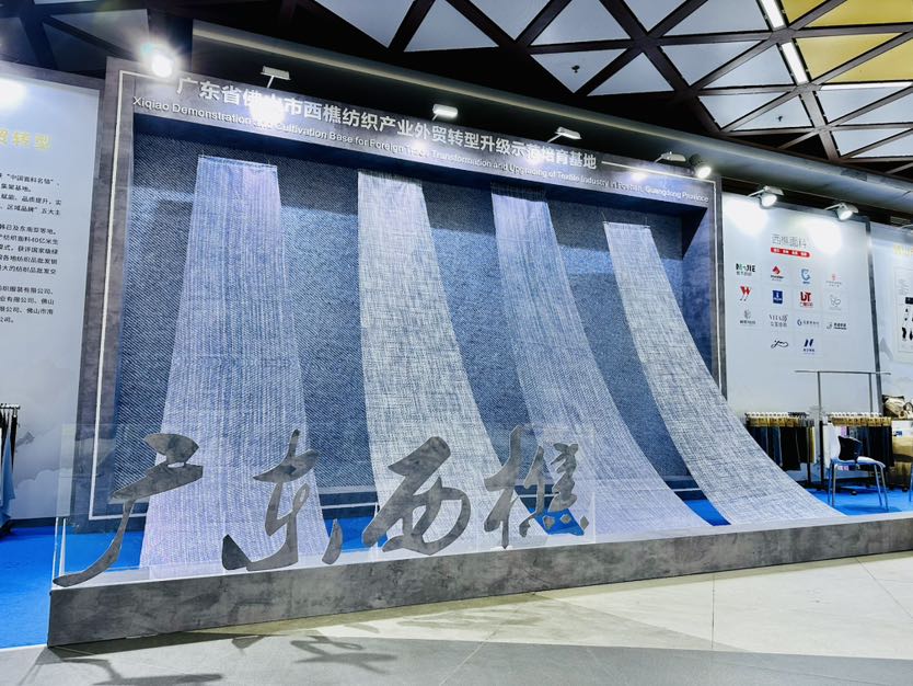 西樵镇以“广东省佛山市西樵纺织产业外贸转型升级示范培育基地”组织14家优质企业集群参展