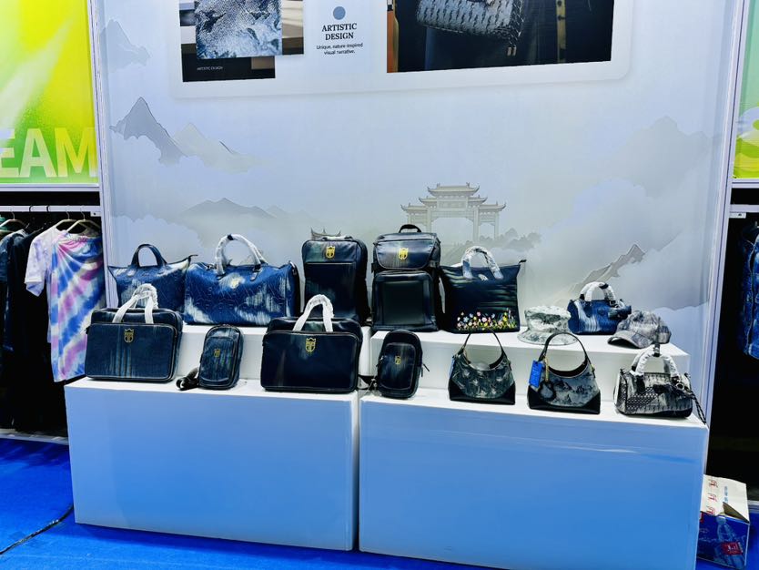 佛山市南海亿棉染织有限公司同样带来多款重磅新品。“我们展出春夏秋冬款牛仔西装套装,将植物染色与牛仔工艺结合,还有刚获‘中国印染面料优秀奖’的‘江山如此多娇’水墨风面料,以及数码科技、柳暗花明等专利花色产品,用创新打破传统牛仔的刻板印象。”