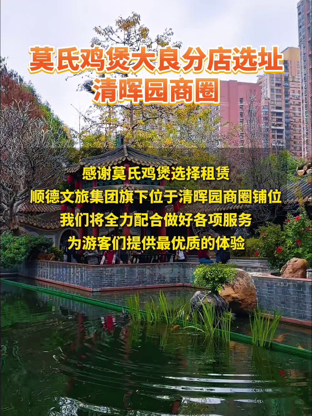 莫氏鸡煲大良分店选址清晖园商圈!感谢莫氏鸡煲选择租赁顺德文旅集团旗下位于清晖园片区商圈铺位,我们将全力配合做好各项服务,为游客们提供最优质的体验