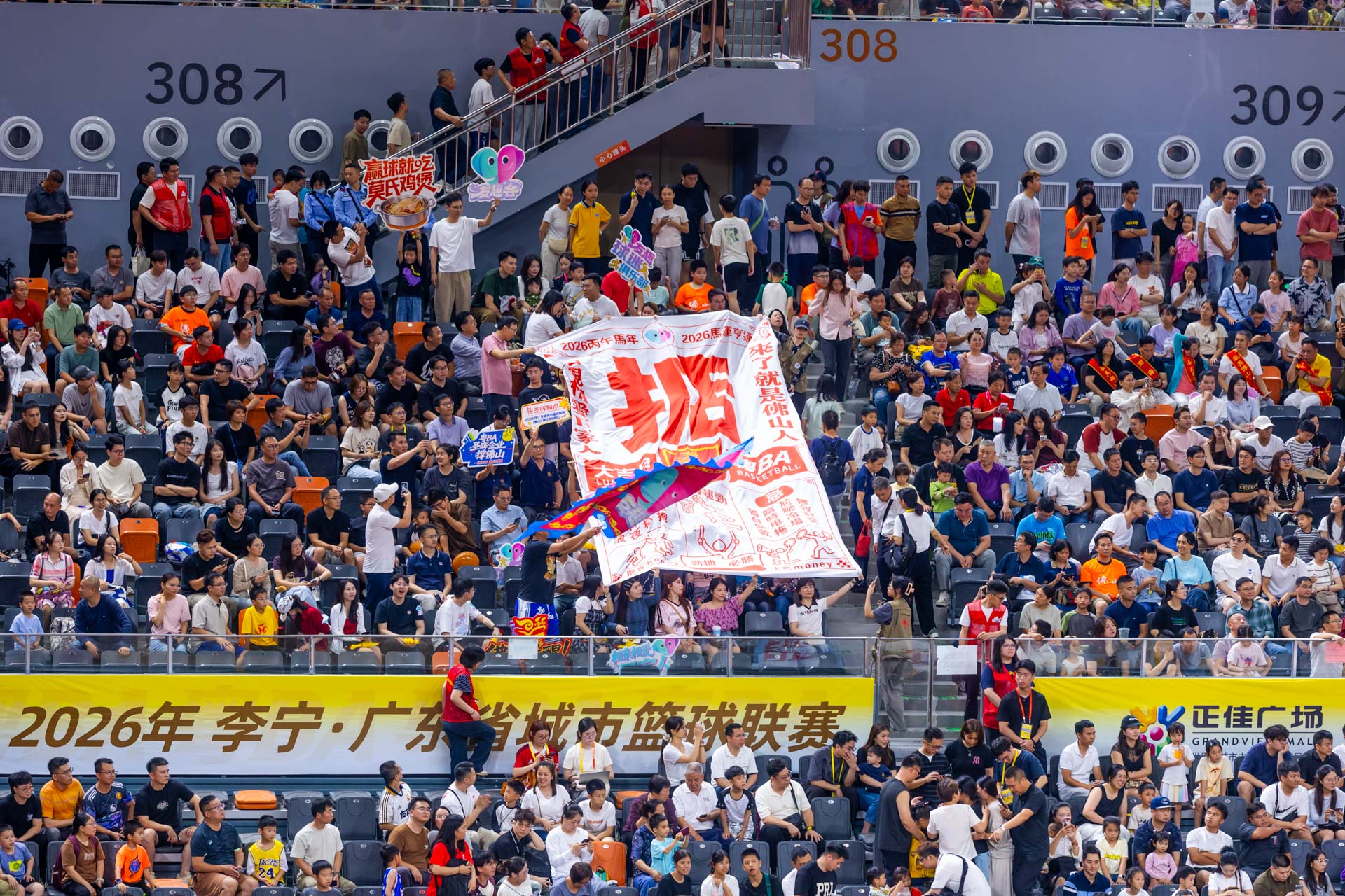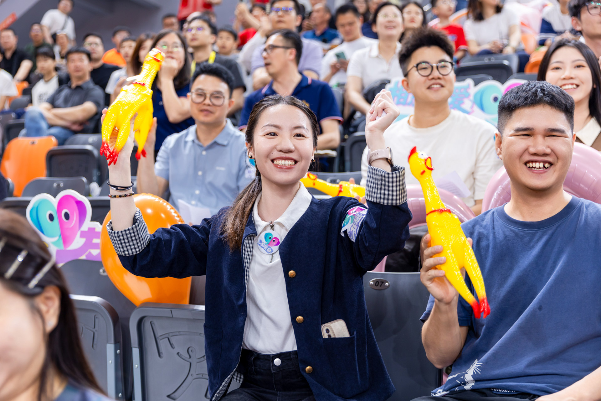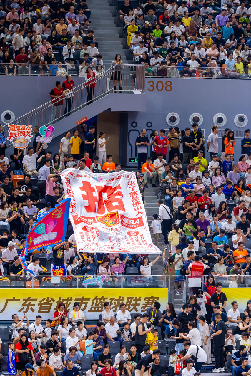 4月18日晚,粤BA佛山队主场开战,憾负劲旅中山队。现场,友趣会打造的“相亲相爱E家人”专属看台,集结佛山、中山青年以球会友,共叙两地兄弟情。尖叫鸡趣味应援、鸡腿姑娘活力热舞,联动本土美食IP“莫氏鸡煲”,点燃赛场氛围。这帮年轻人以篮球为纽带,解锁同城社交新玩法,用双向奔赴诠释了“相亲相爱E家人 来了就是佛山人”的温度和趣味。